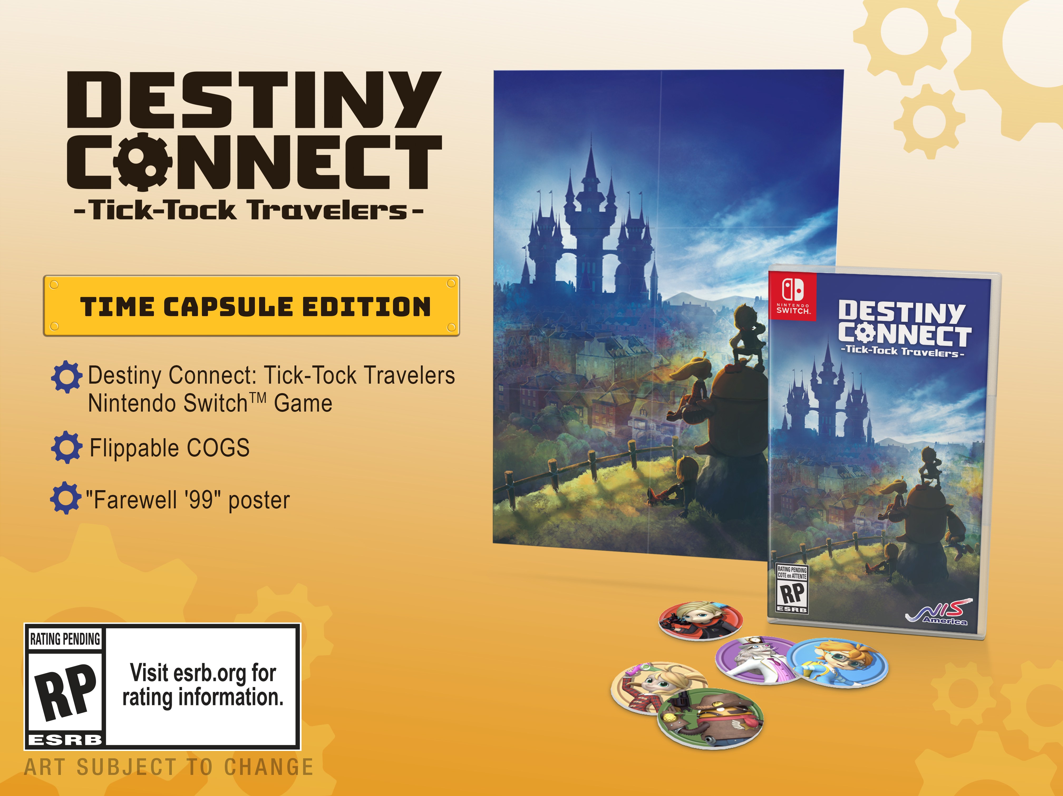 Während der heutigen Präsentation hat NIS America Destiny Connect: Tick-Tock Travelers für eine Veröffentlichung in Europa und Nordamerika angekündigt. Das Spiel wird dabei digital und physisch für PlayStation 4 und Nintendo Switch im kommenden Herbst vertrieben, im NISA Online Store gibt es zudem eine limitierte Sonderedition für 64,99 US-Dollar. Diese enthält neben dem Spiel ein Kunstbuch, eine Soundtrack-CD, ein Poster, einen „Slammer Coin“ und „Flippable COGS“. Die COGS und das Poster sind auch bei der Launch-Edition mit dabei.