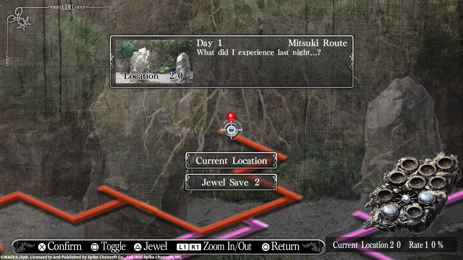 Die Handlung verzweigt sich durch die Parallelwelten in mehrere Stränge. Damit dem Spieler die Orientierung erhalten bleibt, nutzt er das „A.D.M.S“ (Auto Diverge Mapping System) als Mittel zur Navigation. Im Verlauf wird man auf düstere Seiten der Menschheit treffen, die sich mit Kannibalismus und Inzest beschäftigen