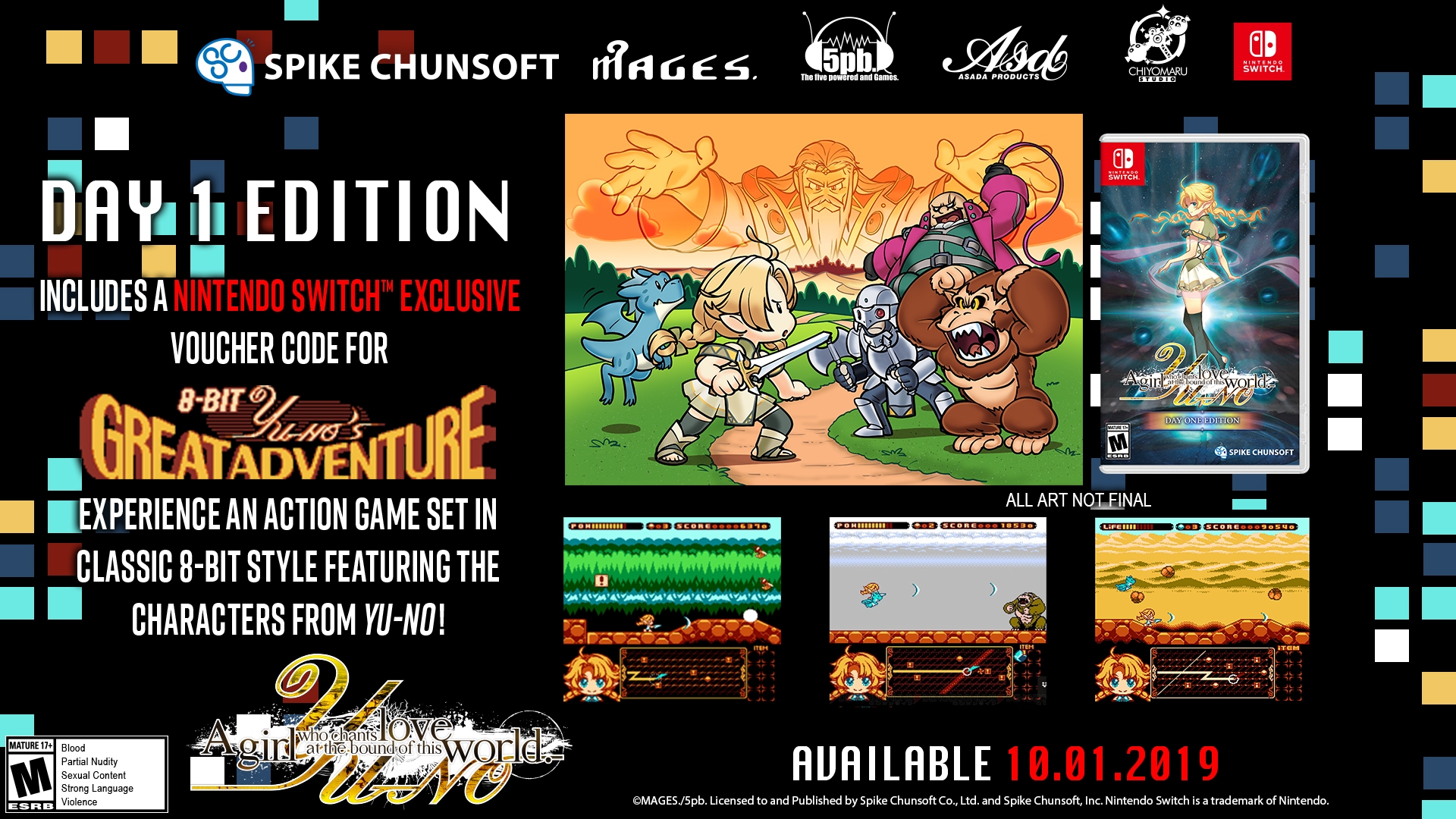 Publisher Spike Chunsoft wird YU-NO: A Girl Who Chants Love at the Bound of this World am 1. Oktober in Nordamerika für PlayStation 4, Nintendo Switch und PCs für 49,99 US-Dollar veröffentlichen. Die beiden Konsolenversionen erscheinen dabei physisch und digital, die PC-Version bei Steam. Die japanische Sprachfassung wird dabei mit englischen Texten ergänzt.
