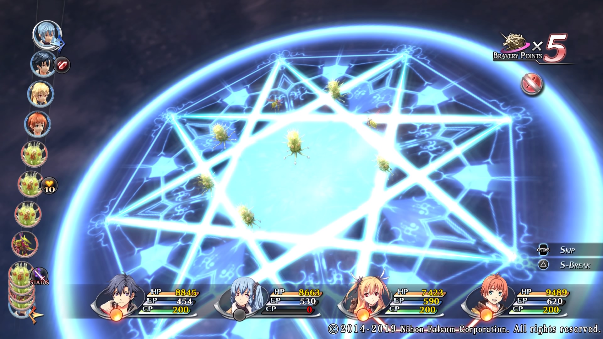 Bei Trails of Cold Steel 2 erwartet euch ein klassisches rundenbasiertes Kampfsystem. Je schneller eure Charaktere sind, desto öfter können diese Handlungen einsetzen. Das Ganze läuft auf einem begrenzten Areal ab. In diesem dürft ihr euch frei bewegen. Anders als in actionbasierten Spielen, kostet euch das Bewegen allerdings eine Aktion. Klassisch setzt ihr Angriffe, Fähigkeiten und Zauber gegen eure Gegner ein, um deren HP auf Null zu bringen. Fähigkeiten nennen sich in Cold Steel “Crafts” und besitzen ihre eigene Energieleiste.