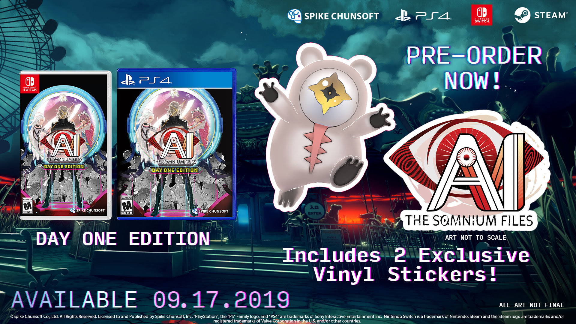 AI: The Somnium Files erscheint für Nintendo Switch und PlayStation 4 am 20. September in Europa. PC-Besitzer können bereits am 17. September via Steam auf das Videospiel zugreifen.