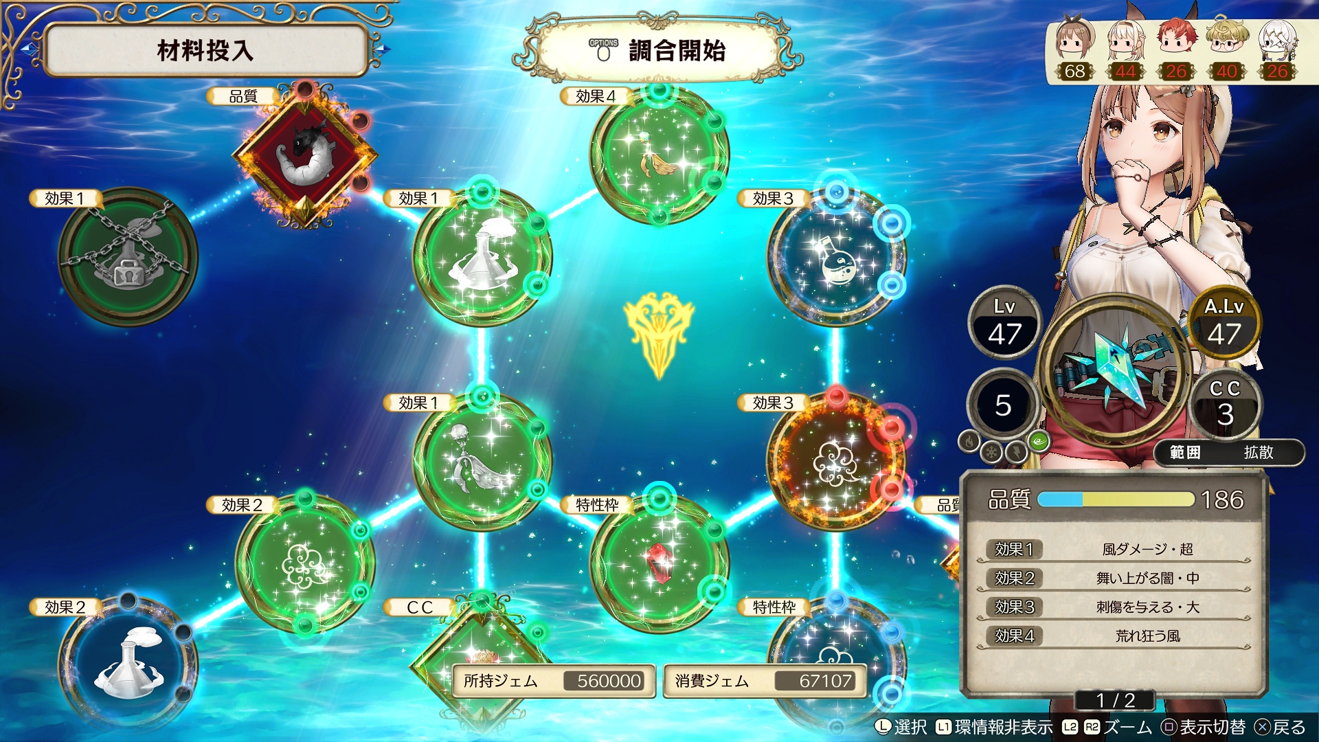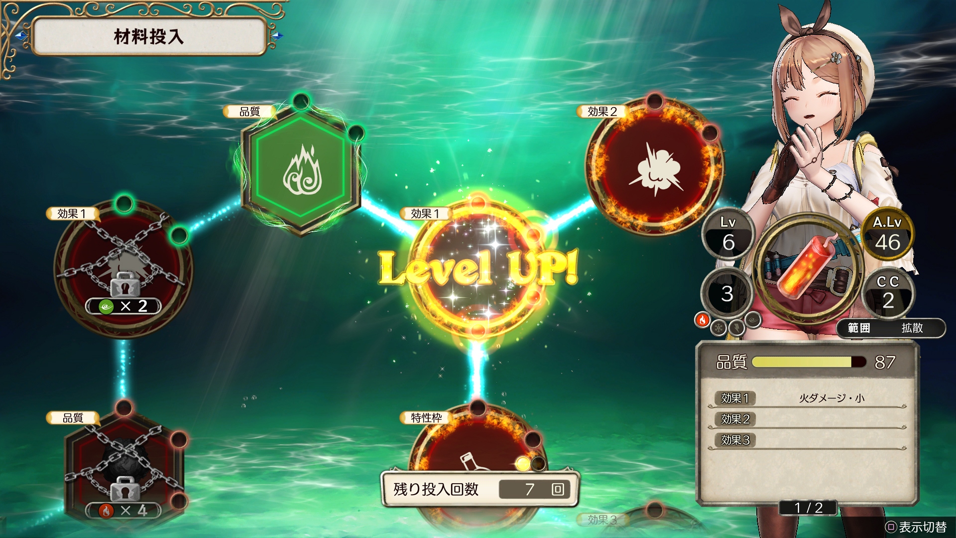 Das völlig überarbeitete System zur Itemherstellung, welches die benötigten Materialien und hinzufügbare Effekte auflistet. Durch das Hinzufügen von Materialien werden benachbarte Felder freigeschaltet, was neue Effekte auslöst. Je nach Vorgehen erhält man ein anderes Resultat, auch mit demselben Rezept. Anfänger können das System auch automatisch ablaufen lassen. Manche Zellen können sogar neue Rezepte freischalten, was zum Experimentieren einlädt.