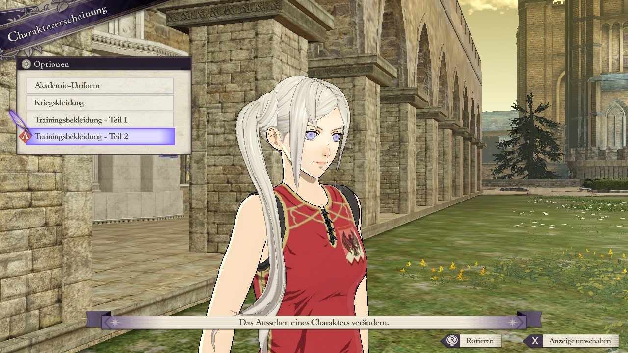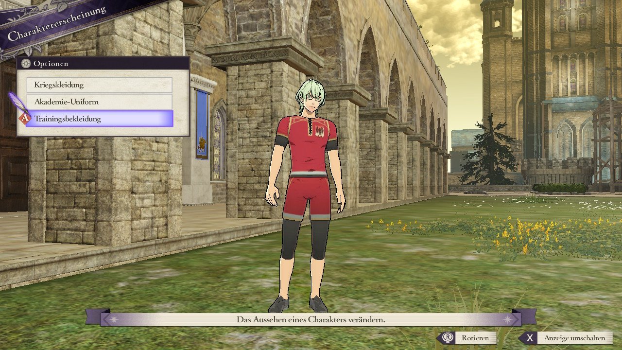 Dort kann unter anderem auch die Militärakademie-Uniform für Byleth aus der ersten DLC-Welle ausgewählt werden. Hier könnt ihr euch Dorothea, Edelgard und Byleth in den Sportkleidern der Schwarzen Adler anschauen.