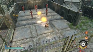 Auch nicht wirklich hilfreich ist die langsame Bewegungsgeschwindigkeit. Das Laufen und Schießen fühlt sich irgendwie träge an. Ihr könnt zwar auf Knopfdruck ausweichen und somit ein wenig flotter agieren, aber auch das ist keine perfekte Bewegungsalternative. Vor allem wenn euch dutzende von Feinden entgegen rennen, findet ihr euch oft einfach nur rückwärts laufend auf sie feuernd, in der Hoffnung, dann nicht überrannt zu werden. Genau dies passiert dann dennoch, ihr kassiert einen Treffer, obwohl ihr so viel geballert habt wie euch dank Überhitzung möglich ist. Das frustriert und macht einfach keinen Spaß.