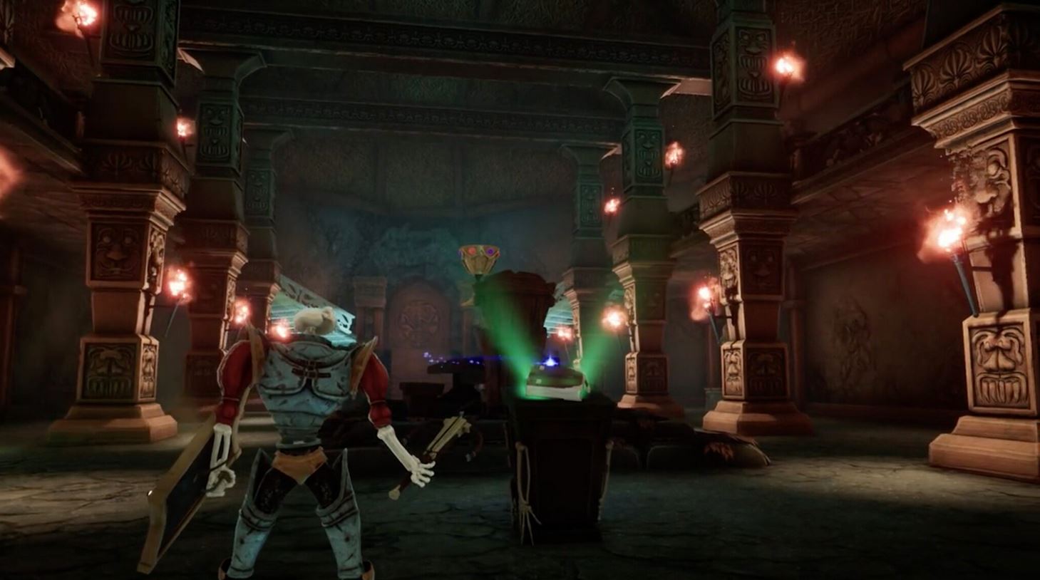 Allgemein wurde die Steuerung modernisiert und so reagiert Sir Daniel nun deutlich flotter und direkter auf die Eingaben des Spielers. So steuert ihr den knochigen Charakter durch etliche abwechslungsreiche Missionen, stets auf der Suche nach den farblich markierten Schlüssel-Runen, welche die verschlossenen Tore innerhalb der Missionen öffnen.