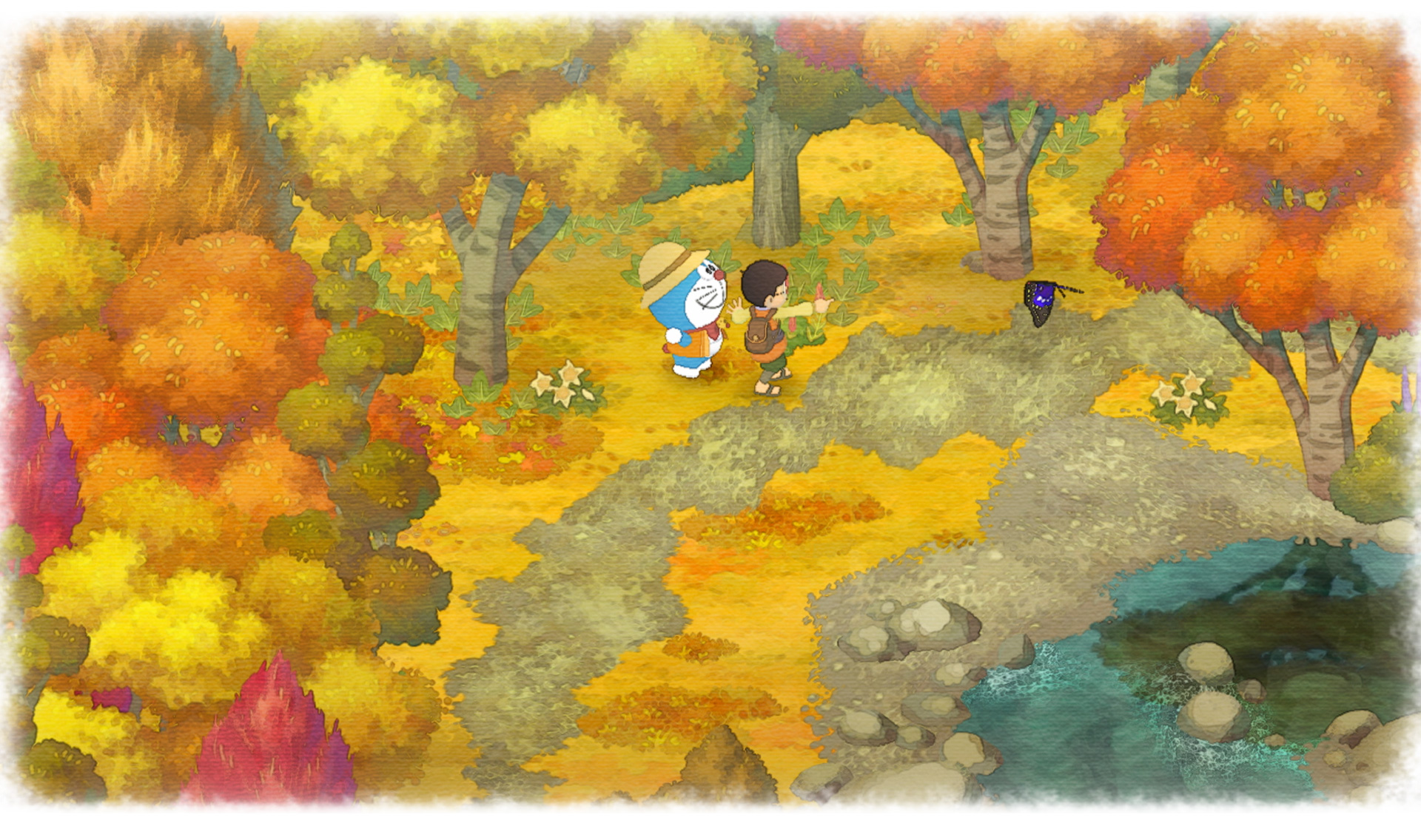 Das Spiel ist optisch gesehen in meinen Augen einfach perfekt. Die Umgebung ist liebevoll handgezeichnet und koloriert wie ein Aquarell. Alles strotzt nur so vor Details: Ein Schlafzimmer verrät mit all seinen kleinen und großen Bestandteilen viel über die jeweilige Figur. Teddybären, Käfersammlungen, Wandbilder bis hin zur Art der Bettwäsche. Es gibt so viel zu entdecken! Das Gleiche gilt für den Rest des Ablegers. Wenn Nobita sich in den schaumigen Wellen am Strand spiegelt oder Bäume im Sturmwind wiegen, weiß man genau, wie viel Liebe in der Grafik steckt. Der spezifische Stil, in dem Menschen hier gehalten sind, trifft nicht ganz meinen Geschmack. Dennoch fügen sie sich gut vor den Hintergründen ein und lösen bei einigen bestimmt Nostalgiewellen aus.