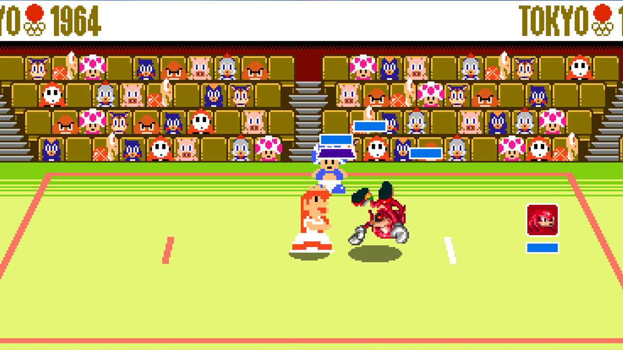 Eine besondere Neuerung stellt aber der Abenteuermodus dar, in dem Mario, Sonic, Bowser und Dr. Eggman in eine magische Spielekonsole gezogen werden. Dort erleben sie verschiedene Retro-Disziplinen der Olympischen Spiele in Tokyo 1964! 10 solcher 2D-Disziplinen könnt ihr spielen, darunter Turmspringen, Judo, Schießen, Marathon und den 400m-Hürdenlauf.
