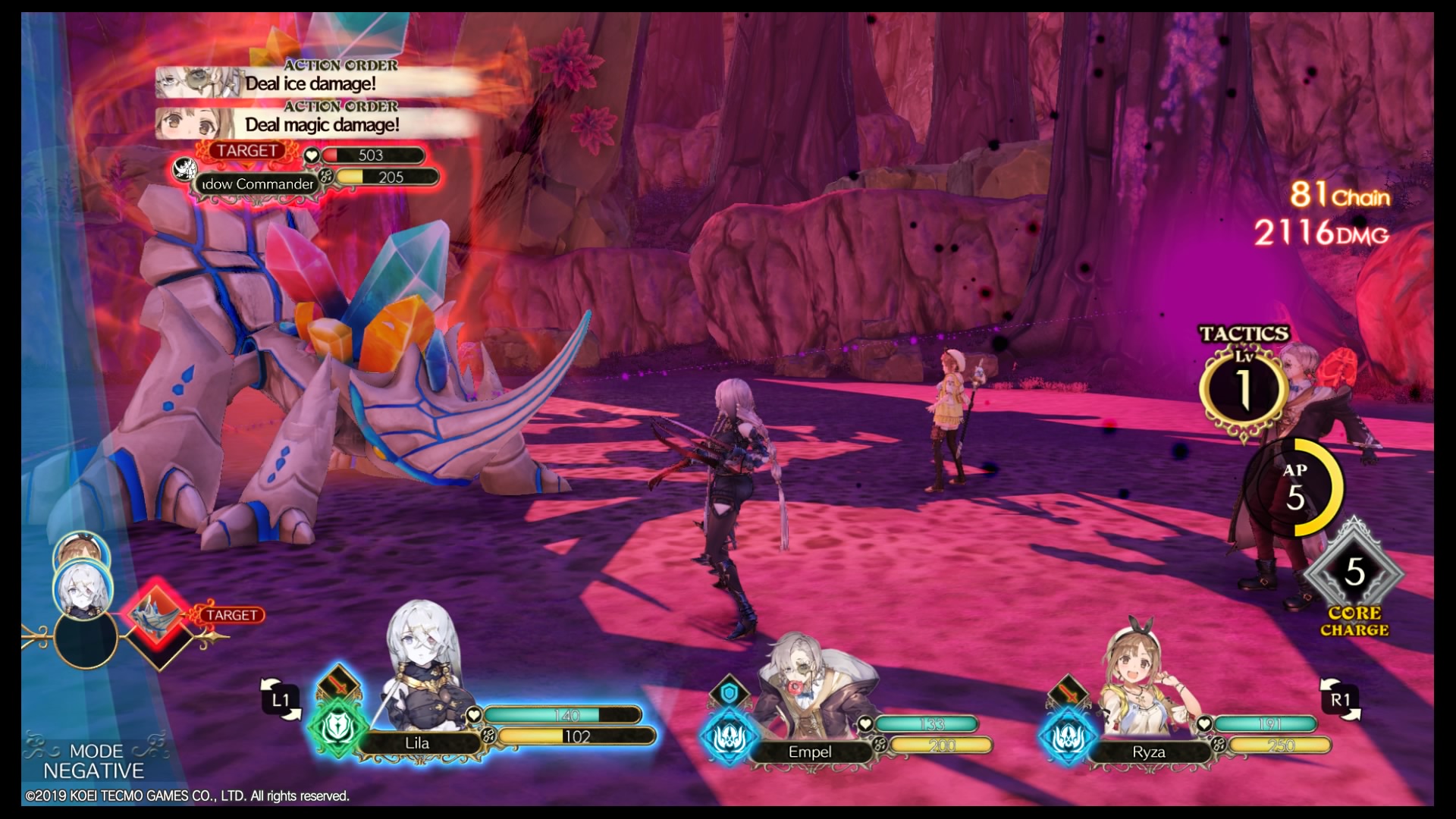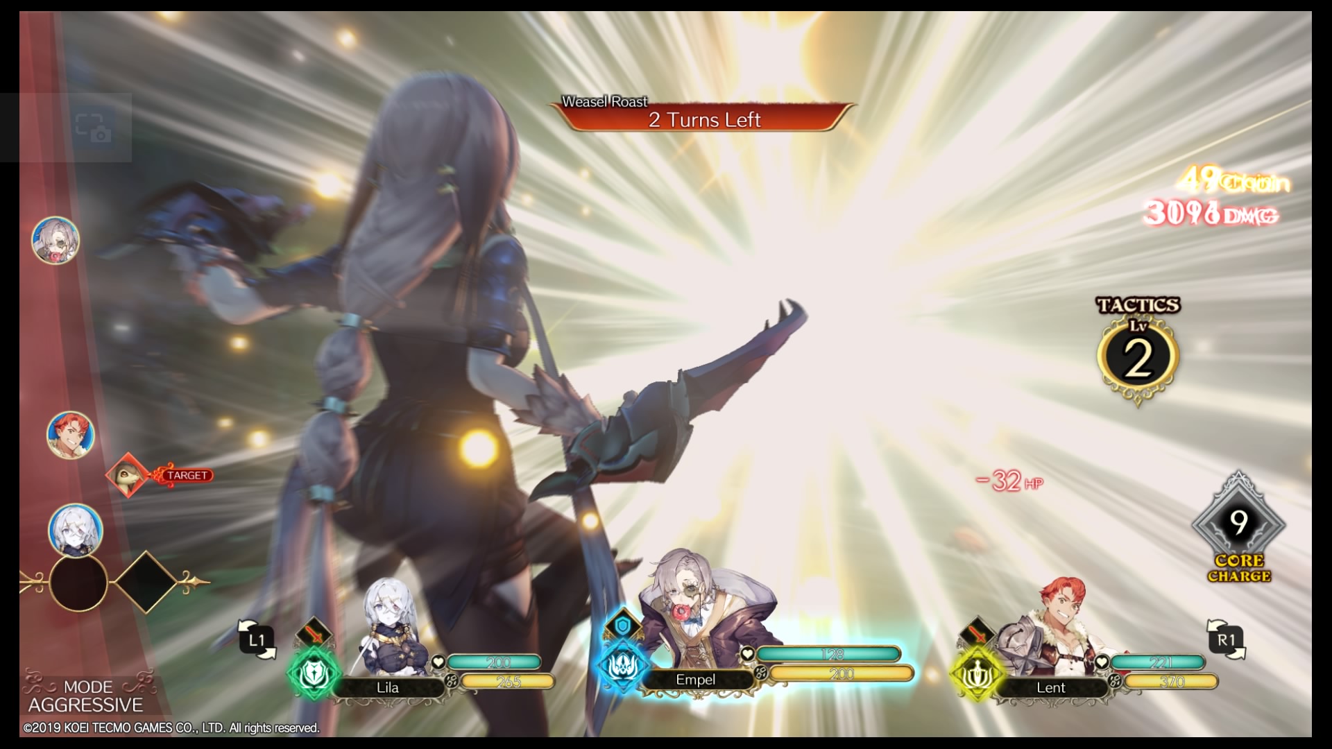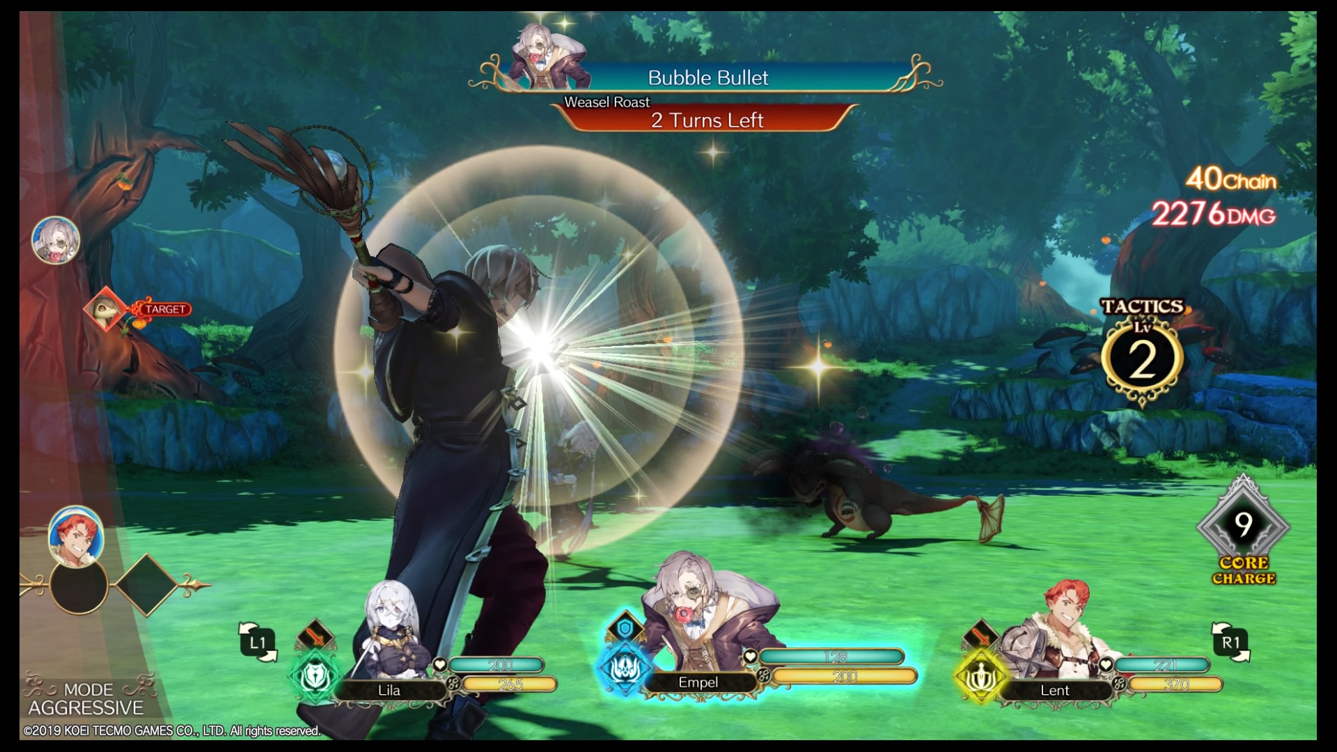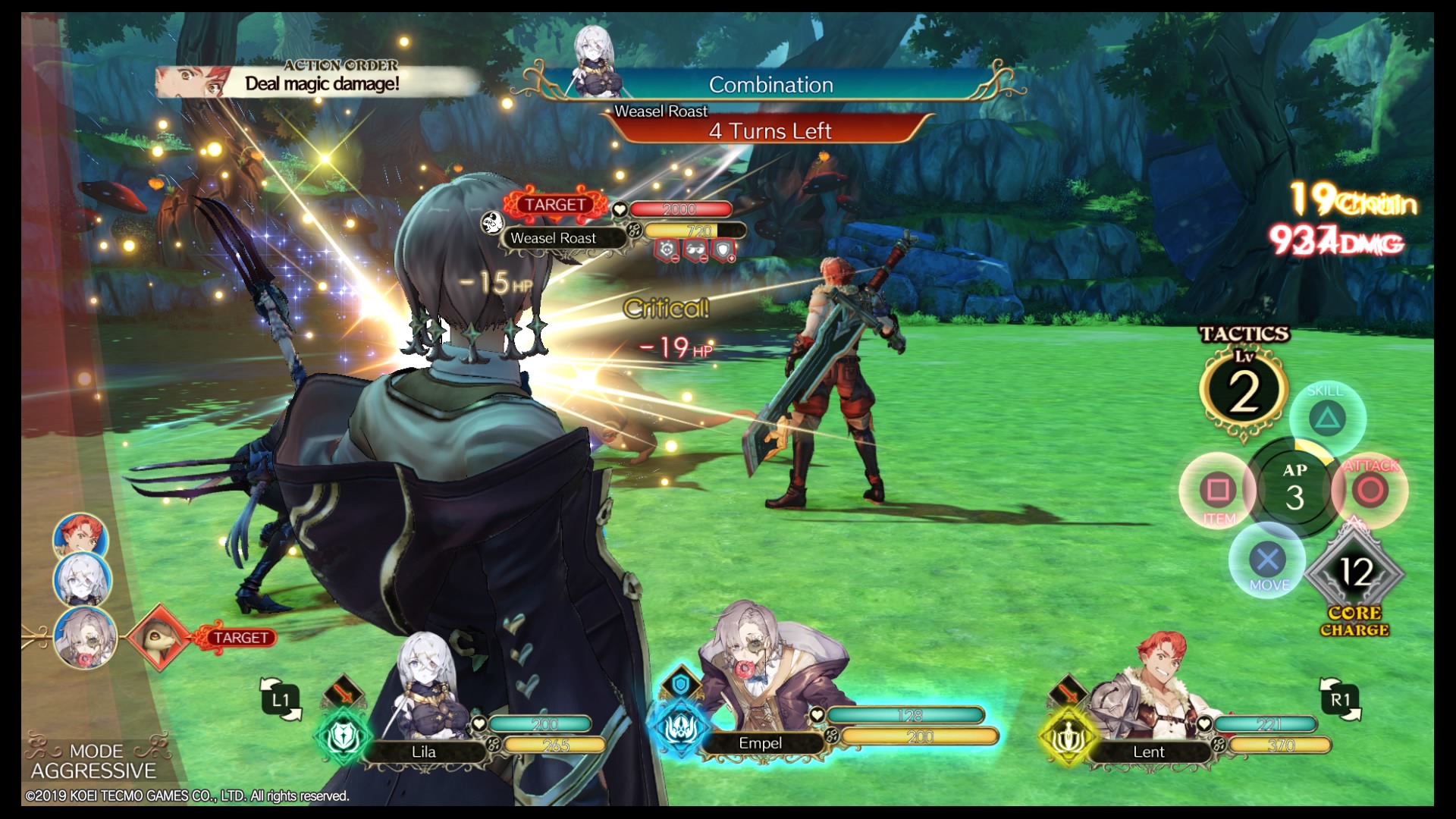 Spezialattacken verwenden hierbei einen bestimmten Anteil des Taktikmeters, das sich bei jeder Attacke wieder auffüllt. Das Taktikmeter lässt sich im Kampf auch aufleveln, was manche Spezialattacken verbessern kann, aber in erster Linie mehr Taktikpunkte zur Verfügung stellt. Darüber hinaus kann jeder Gegenstände einsetzen, die allerdings nicht mehr einfach verbraucht werden, sondern über Core-Item-Punkte abgerechnet werden.