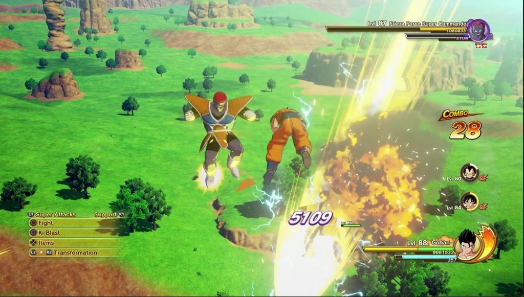 Zum einen bietet der Titel beispielsweise Open-World- beziehungsweise Open-Field-Elemente, zum anderen auch sehr actiongeladene und spannende Kämpfe. Quasi einen Anime zum Mitspielen. Dabei ist das Spiel grafisch und soundtechnisch zu jeder Zeit äußerst liebevoll gestaltet und sollte so jedem Dragon-Ball-Fan das Herz aufgehen lassen. Sogar der Original-Soundtrack ist mit an Bord und sollte so manchen Fan in freudige Verzückung und Nostalgiegefühle versetzen.