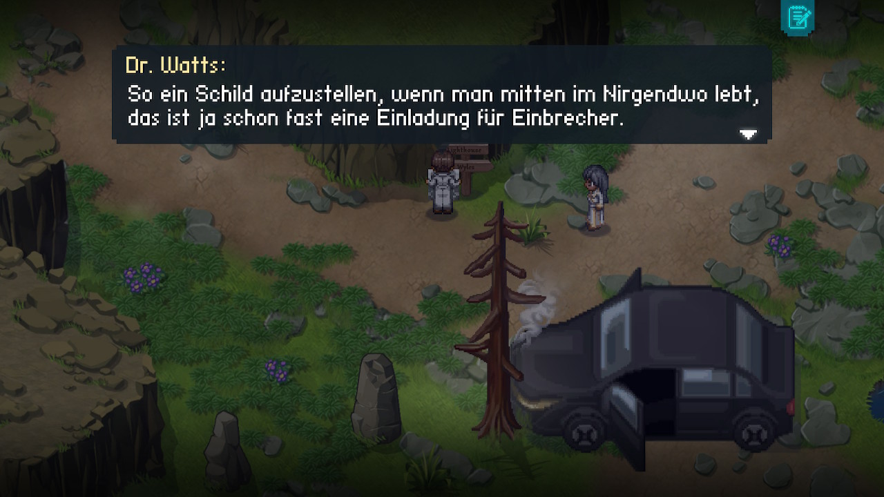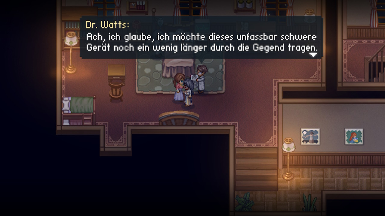 Generell strotzt To the Moon nur so vor Komik. Ich musste mir ab und an eine Träne verkneifen, natürlich vor Weinen, aber auch vor Lachen. Es gibt so viele Anspielungen zu anderen Spielen, Filmen, Anime und vielem mehr. Den Höhepunkt des Humors erreicht das Spiel bereits kurz nachdem sich einer der Doktoren zum Leuchtturm aufmacht. Ich möchte hier nicht zu viel verraten, aber ich hätte dem Eichhörnchen den Schädel weggeblasen, wenn man mich gelassen hätte!