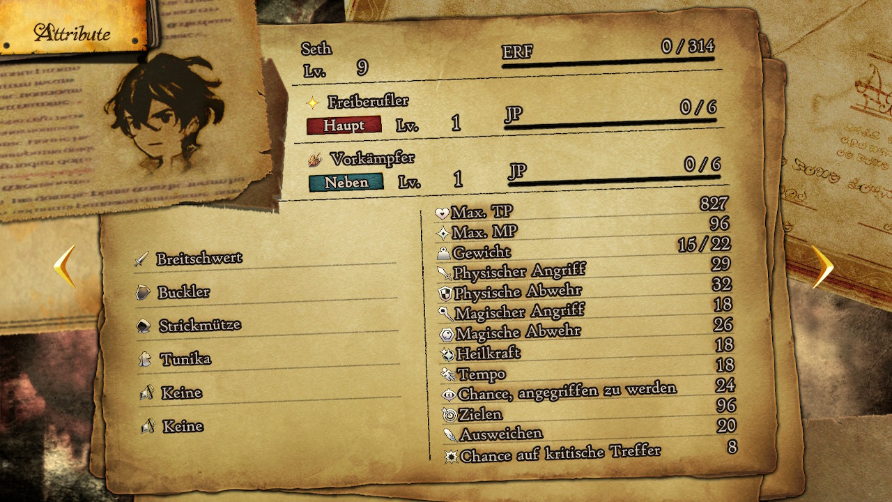 Sobald man sich mit der Menüführung etwas näher auseinandergesetzt hat, wird recht schnell klar, dass es hier irgendwie an etwas Übersicht fehlt. Das Jobmenü zeigt nicht mehr etwaige Statusboni an und das Ausrüstungsmenü ist in der Hinsicht auch recht abgespeckt. Nicht, dass man nun Werte entfernt hätte, im Gegenteil. Mit einem Statuswert für Gewicht und der prozentualen Chance, angegriffen zu werden, kamen sogar noch mehr dazu. Man sieht es nur nicht in dem jeweiligen Menü, welches die Auswahl verlangt. Ein weiteres Menü muss aufgesucht werden, fotografisch im Gedächtnis gespeichert werden, um dann nach der Änderung im Kopf Vergleiche aufstellen zu können.