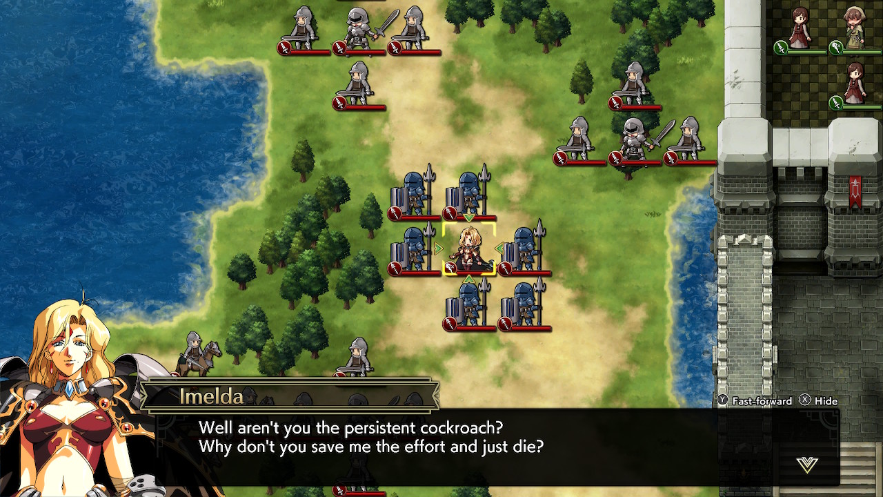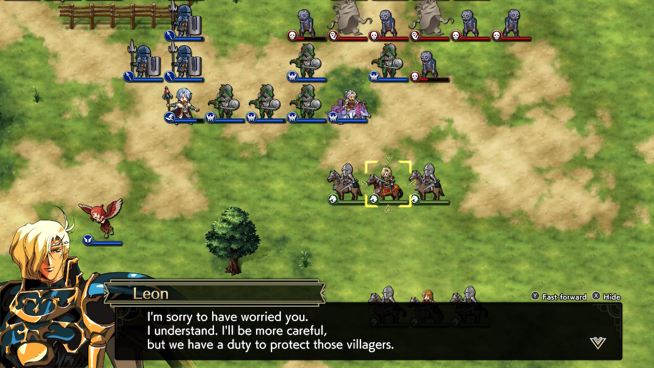 Im Gegensatz zu Fire Emblem legen die Langrisser-Spiele aber um einiges mehr Fokus auf die eigentliche Geschichte und natürliche Charakterentwicklung, ohne mit Charakter-Dating-Quests abzuschweifen. Für einige ein Pluspunkt, für andere vielleicht auch eher nicht. Dennoch konnten mich die Fantasy-Story und die Charaktere, die ebenfalls noch nicht so stark mit Stereotypen durchzogen sind, sehr überzeugen.