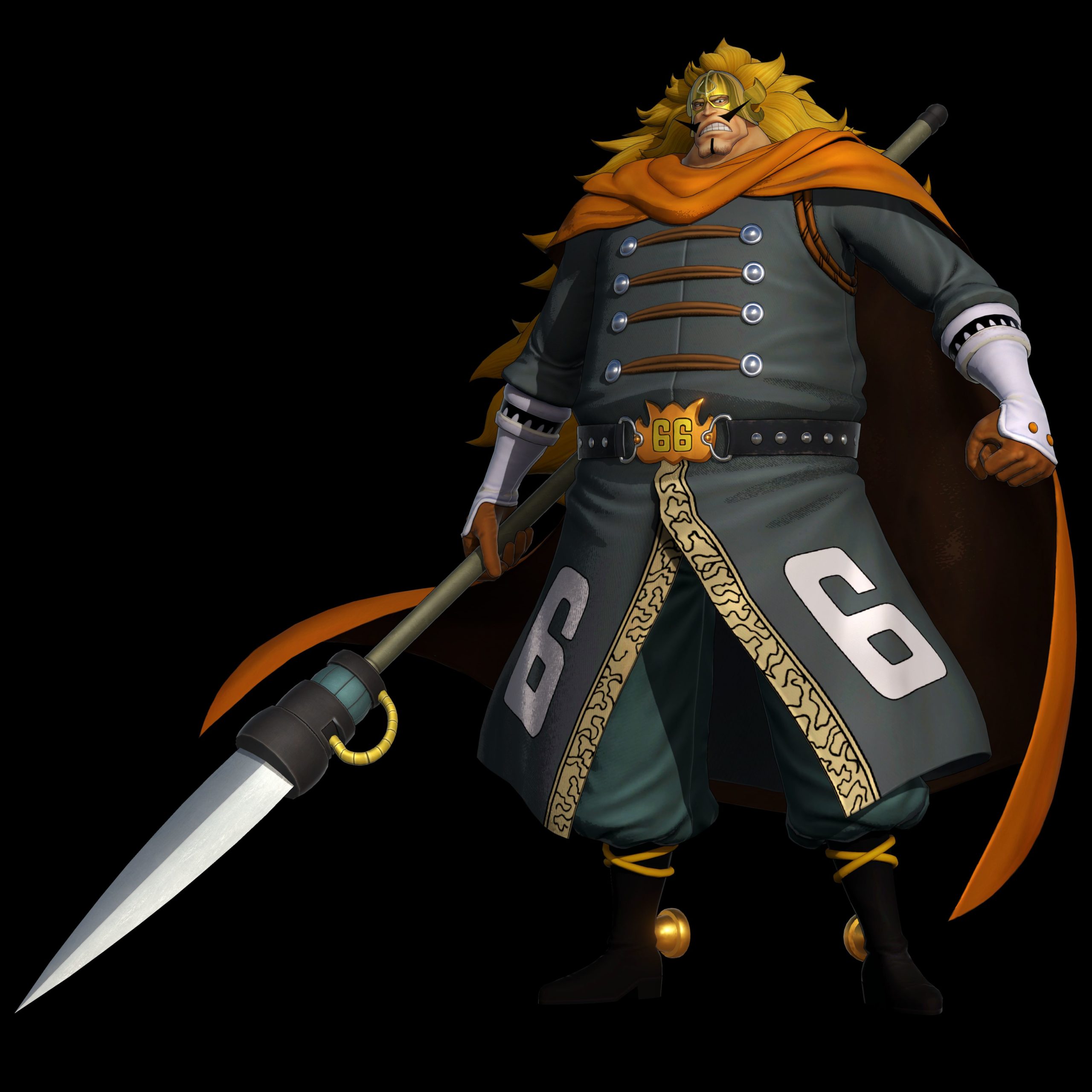 Vinsmoke Judge, einer der großen Antagonisten im Story-Bogen von Whole Cake Island, ist der König des Königreichs Germa und der Leiter seines militärischen Zweigs, der Germa 66. Seine hünenhafte Gestalt hindert ihn nicht daran, geschickt und dennoch mit kolossaler Stärke zu agieren. Judge verwendet seine Ausrüstung und Waffen, um mit Elektrizität verstärkte Schläge auszuführen.