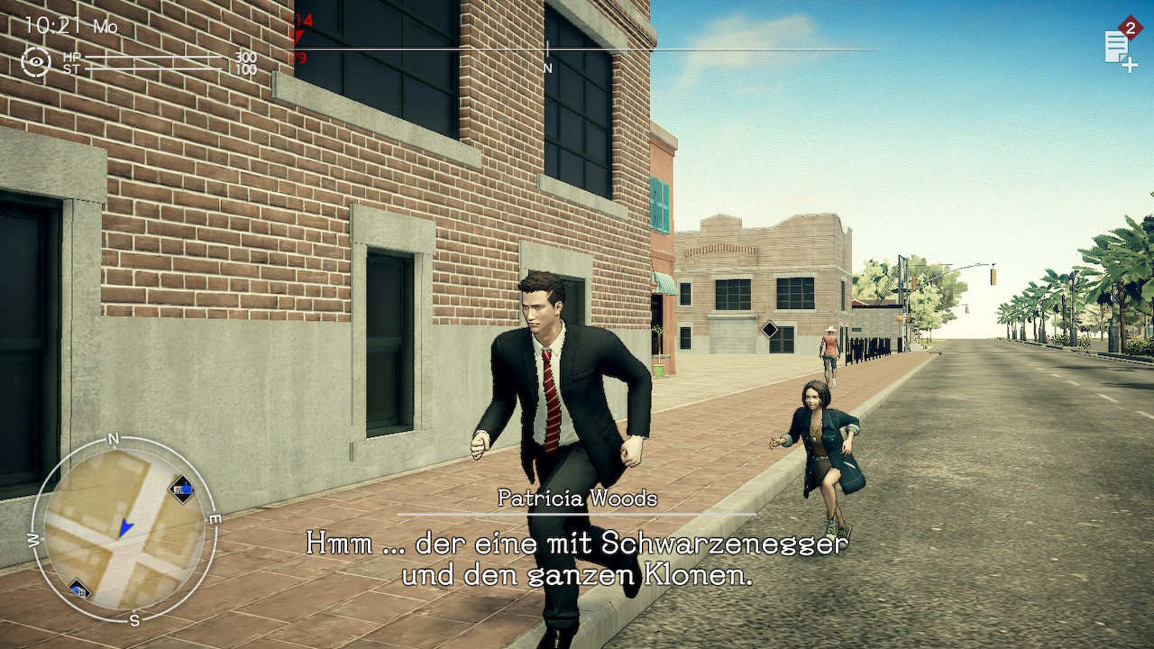 Dass Agent York nicht zwingend auf die Interaktion mit seinen Mitmenschen angewiesen ist, um interessante Unterhaltungen zu führen, wissen vor allem Kenner des Vorgängers. Natürlich zieht er nämlich wieder regelmäßig seinen „Partner“ Zach zu Rate, bespricht mit ihm den nächsten Filmabend oder erkundigt sich nach seiner Meinung zu Fragen aus den unterschiedlichsten Themenfeldern. Besonders in Kombination mit Yorks unverwüstlicher Heiterkeit, schrulliger Offenheit und seiner Gabe, in allem das Positive zu sehen, stellt unser Protagonist auch in Deadly Premonition 2 das goldene Herzstück des Titels dar.