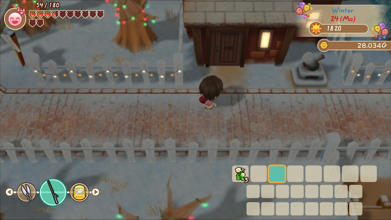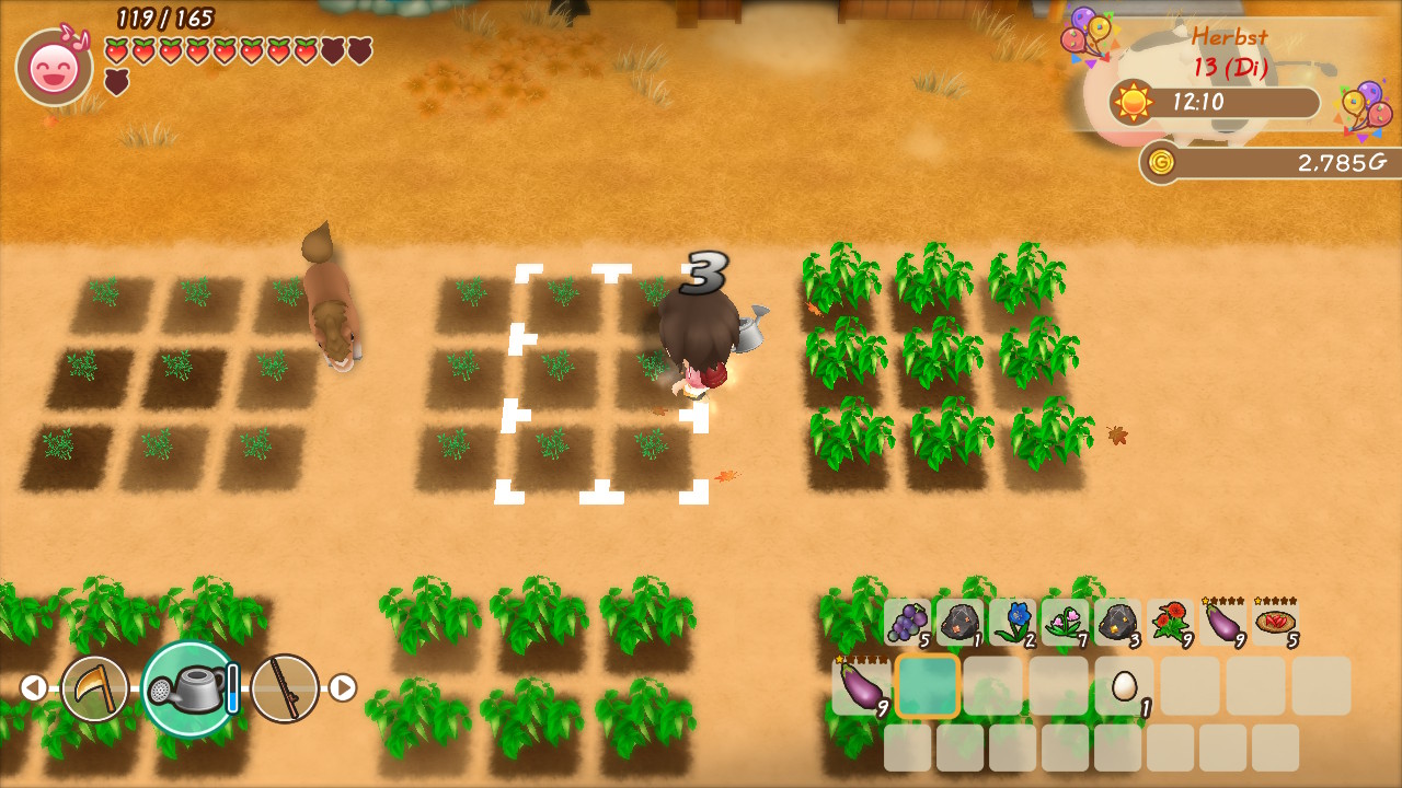 Leider ist selbst das Anpflanzen sehr nervenaufreibend – im Sommer erwartet euch nämlich die Taifunsaison, die eure Felder mit Steinen und Ästen bombardiert. So könnt ihr einige der ausgesäten Pflanzen verlieren, sehr ärgerlich!