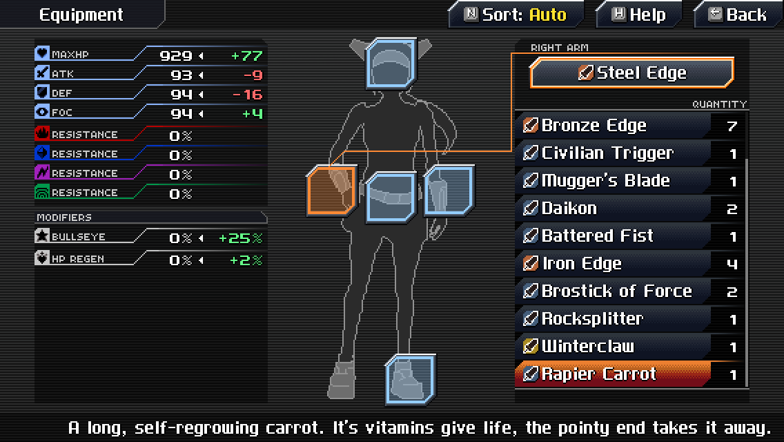 Hinsichtlich des Balancing bewegt sich CrossCode zwischen RPG und Action-Adventure. Level-ups machen zwar einen gewissen Unterschied, können spielerisches Unvermögen aber nur geringfügig kompensieren. Skalierende EXP verhindern zudem, dass man überlevelt ist. Mehr Einfluss auf den Schaden hat die Ausrüstung, doch gute Ausrüstung bekommt man nicht gerade hinterhergeworfen. Entweder erhält man sie bei Nebenaufgaben oder in besonders knifflig versteckten Schatztruhen.