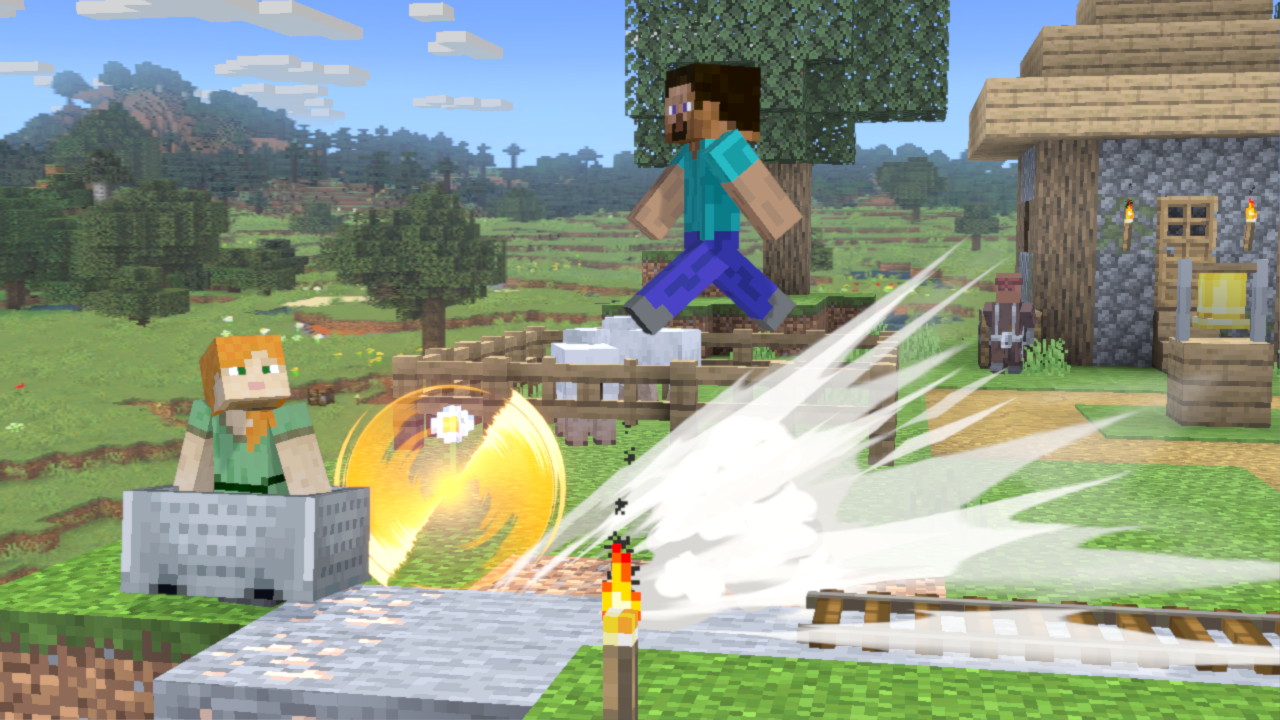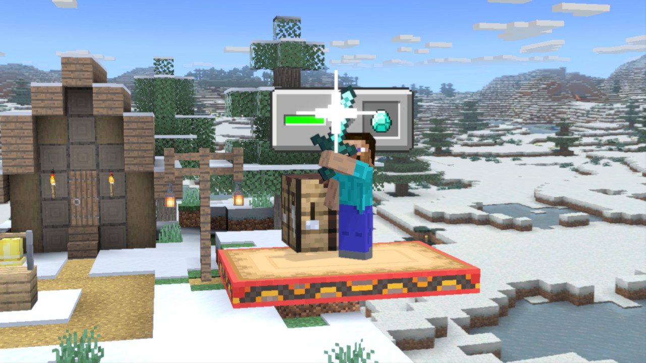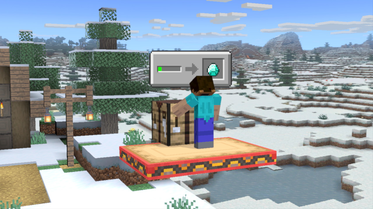 Denkt man an Minecraft, dann kann man nicht über wichtige Mechaniken wie das Material sammeln, Blöcke bauen und das Handwerk hinwegsehen. Diese Aspekte wurden natürlich auch bei der Implementierung von Steve & Alex in Smash berücksichtigt. Wie das genauer aussieht?