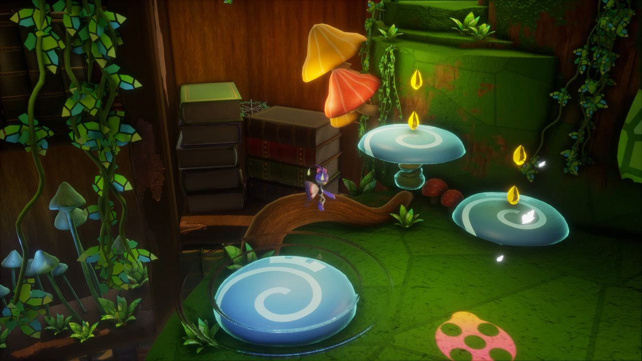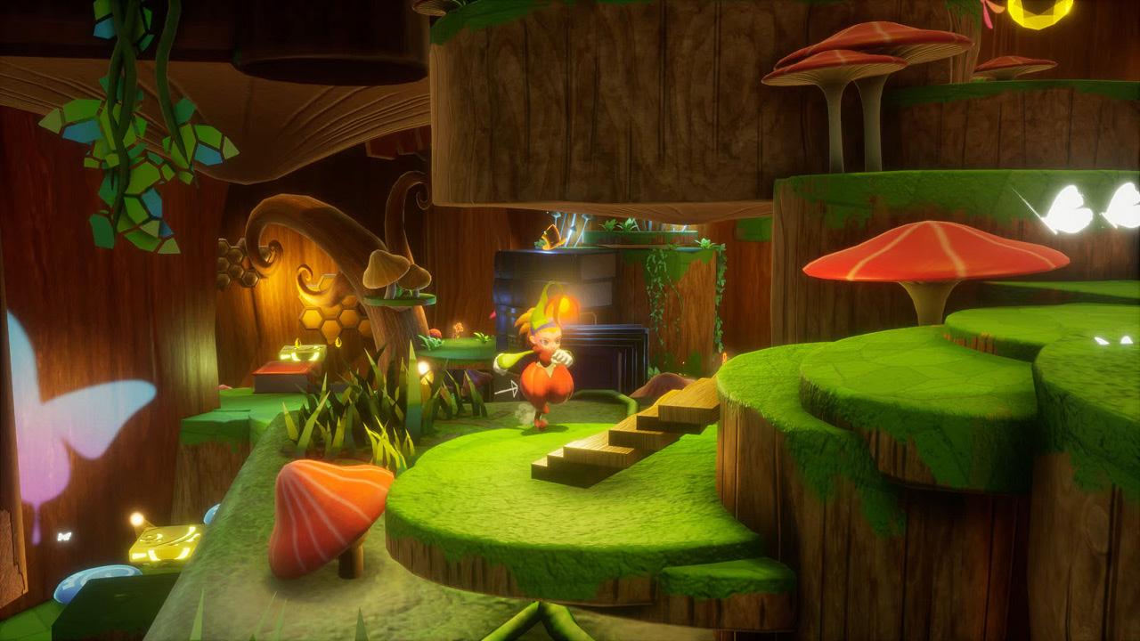 Wie ihr euch denken könnt, sind die Kostüme in Kapitel 3 von der gekäferten Sorte. Als Dämmerling kann der Spieler in der Nacht noch weiter fliegen als am Tag, der Sichelwerfer greift in Form einer Gottesanbeterin an, als Netzkletterer gelangt man an neue Orte, dank der Laternenblume findet man den Weg im Dunkeln und der Miniaturelf lässt euch durch enge Türen zwängen.