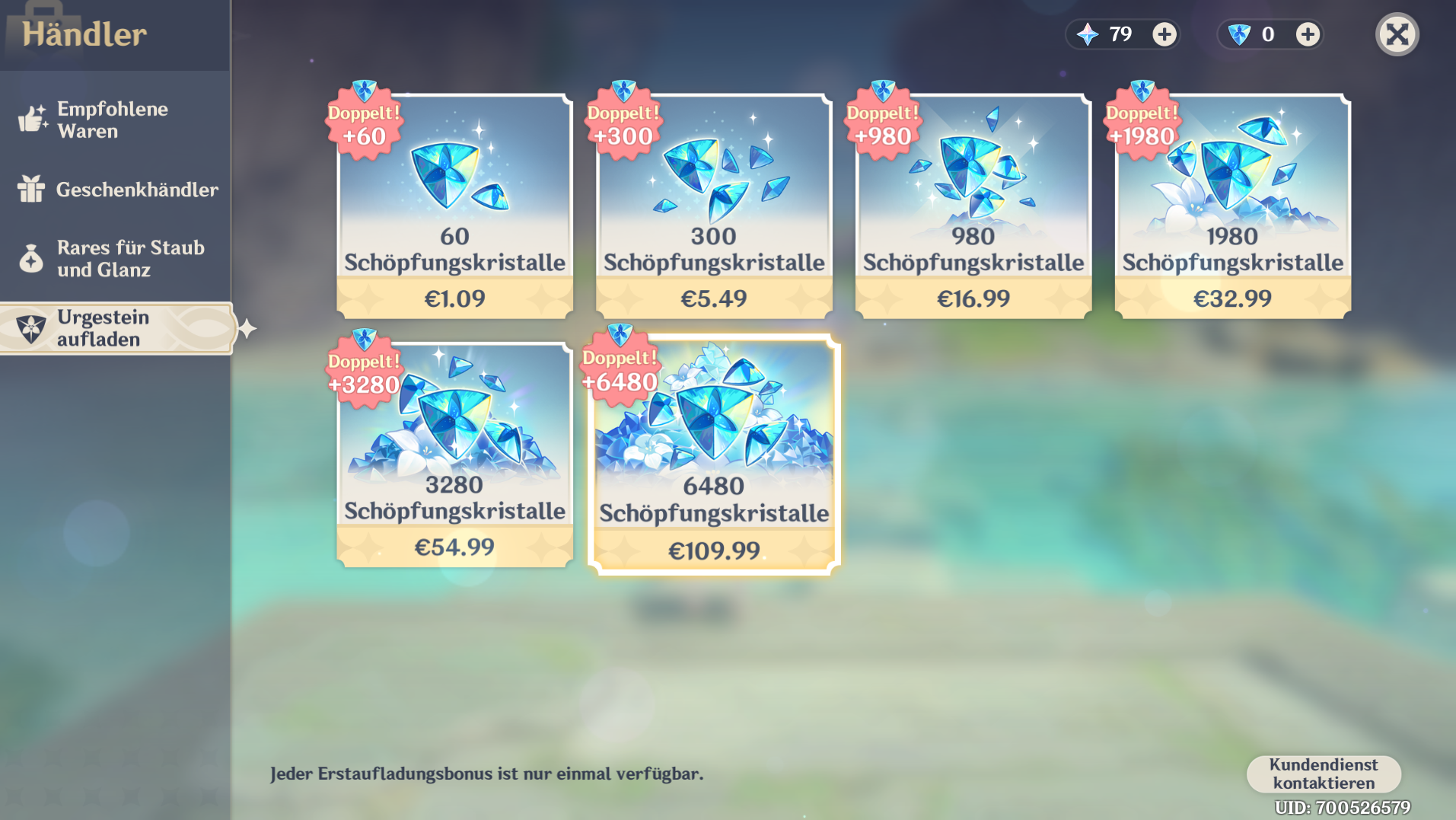 Da Genshin Impact ein Free-to-play-Online-Spiel ist, muss das Geld anderweitig in die Kassen der Entwickler gespült werden. Man bedient sich hier nicht etwa einem Abomodell, sondern setzt auf die Gebete, mit denen Spieler Charaktere und Items erhalten können. Um ein Gebet durchzuführen, benötigt ihr ein „Schicksal“, das ihr im Laufe des Spiels oder für diverse Ingame-Währung kaufen könnt. Insgesamt habt ihr drei Währungen, mit denen ihr euch so ein Schicksal kaufen könnt. Eine dieser Währungen, das Urgestein, kann gegen Schöpfungskristalle eingetauscht werden. Diese könnt ihr gegen Echtgeld im Shop erwerben. Eine viel zu lange Handelskette, wenn ihr mich fragt.