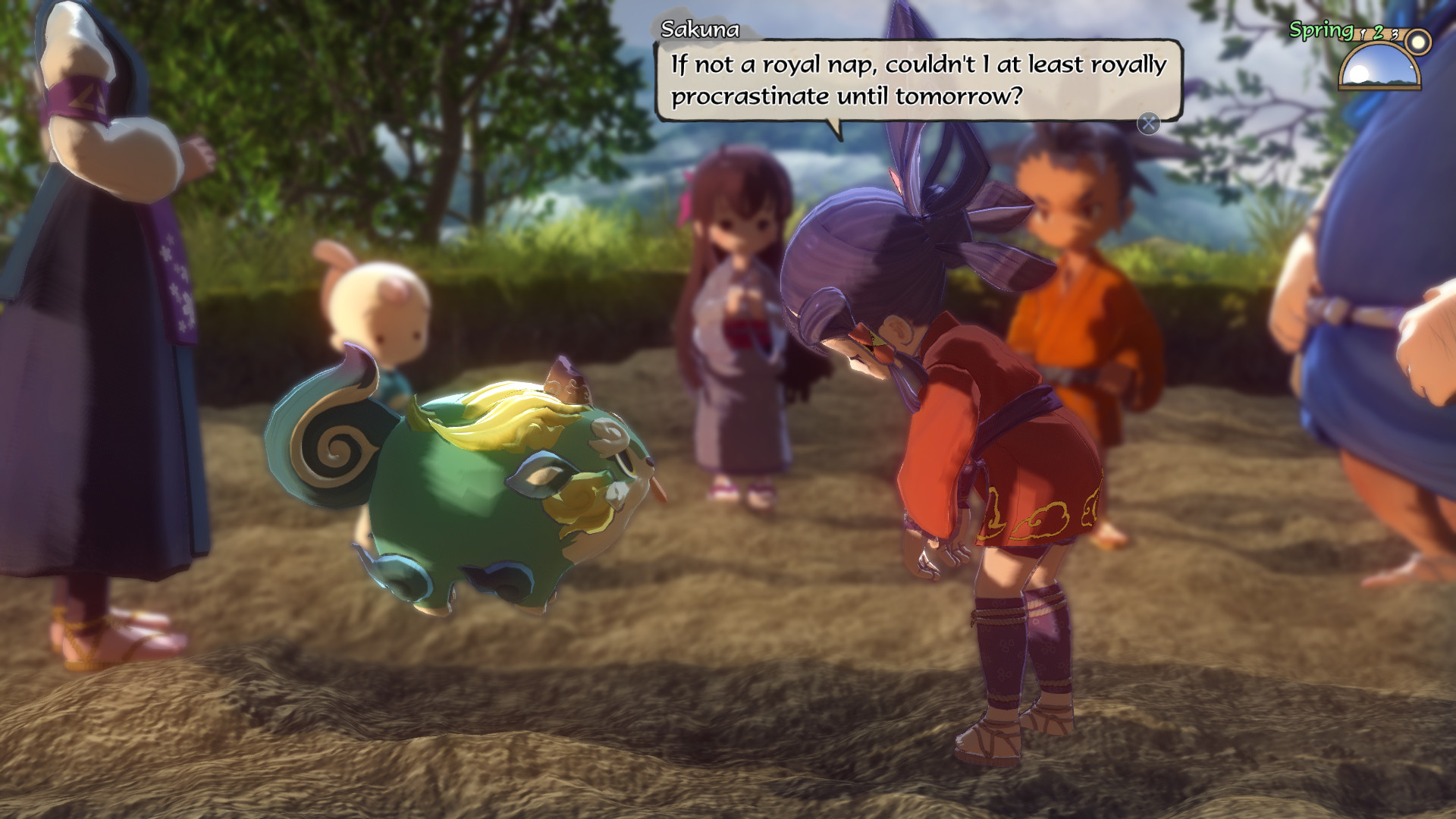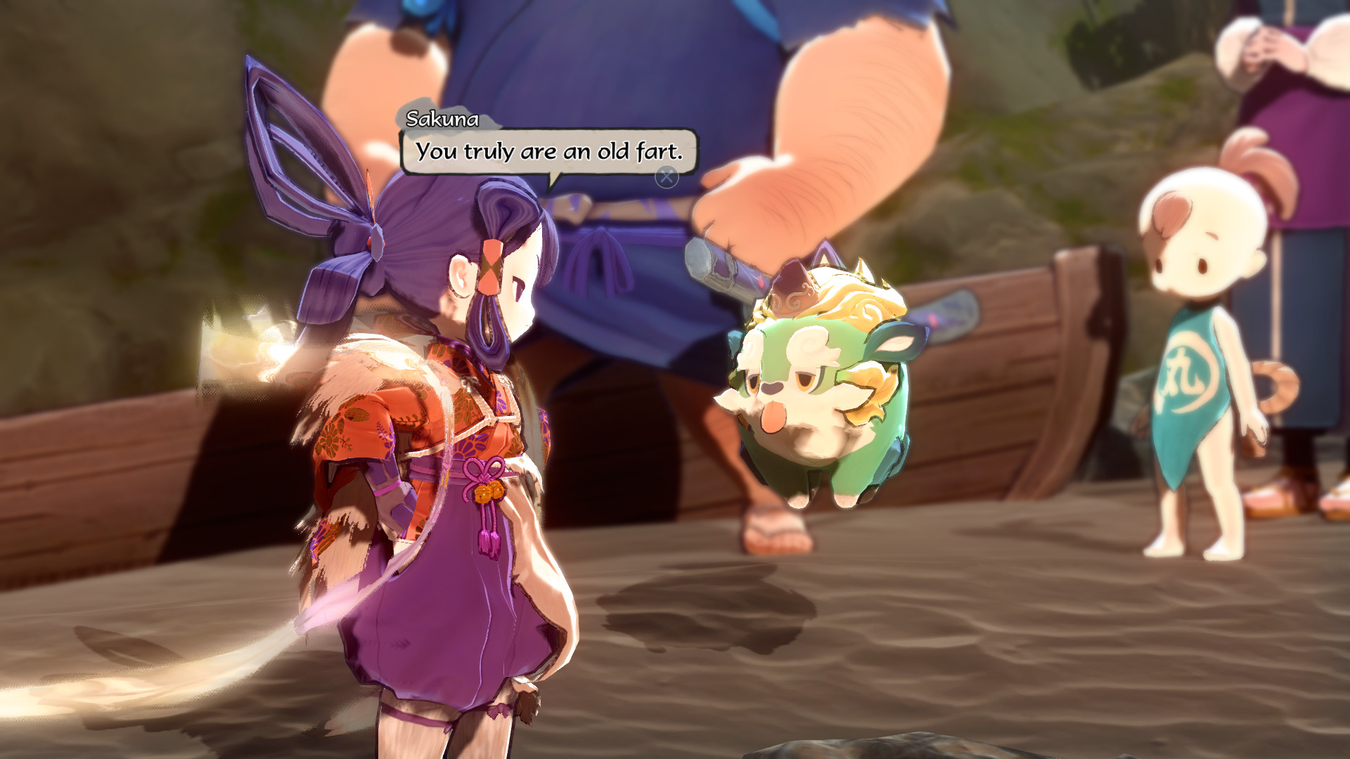 In dieser von der japanischen Mythologie inspirierten Erzählung rund um unsere kleine Heldin passiert ein Missgeschick nach dem anderen. Sakuna möchte am liebsten direkt wieder weg und sich ihren Weg in ihre Heimat erbetteln. Ihre Gefolgschaft ist ihr suspekt. Letztlich sind es niedere Menschen, mit denen sie sich abgeben muss. Doch je länger sie ihr Leben mit den anderen teilt, desto mehr kann sie sich damit arrangieren und eine Art Verbindung mit den anderen knüpfen.
