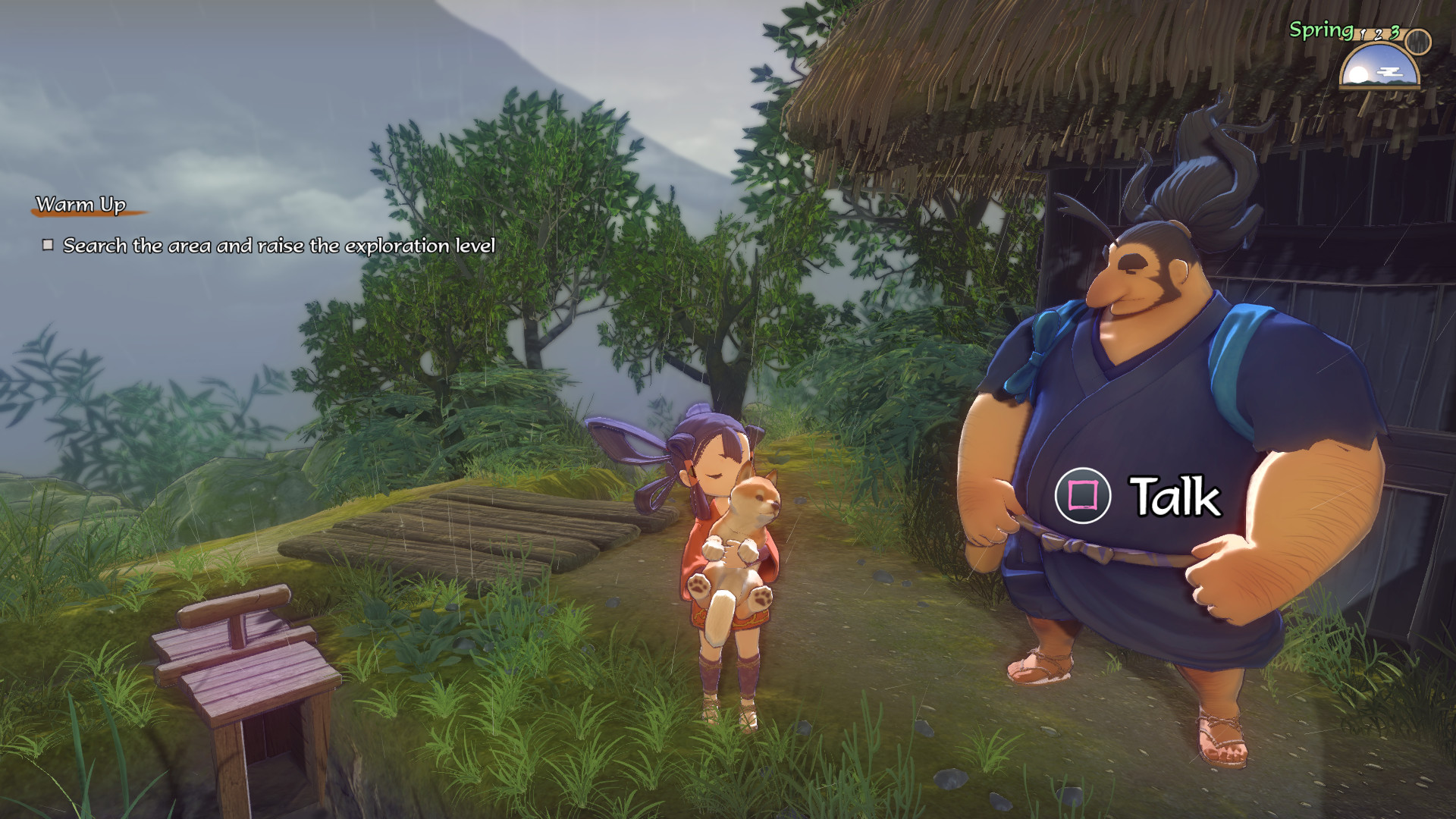 Womit wir auch schon beim Gameplay von „Sakuna: Of Rice and Ruin“ angekommen wären. Das RPG aus dem Hause Edelweiss ist ein klassischer Sidescroller mit Jump-&-Run-Elementen. Demgegenüber steht mit dem Reisanbau eine ausgereifte vielschichtige Simulation. Vom Ansetzen des Saatgutes bis hin zur Reisernte gilt es vieles zu beachten. Ob euer Reis gülden in der Herbstsonne schimmert oder euch eine ordentliche Magenverstimmung bereitet, liegt in eurer Hand. Doch beginnen wir beim Anfang. Nachdem ihr auf der Insel ausgesetzt wurdet, befindet ihr euch nach einer kurzen Einführung auf der ehemaligen Farm eurer Mutter.