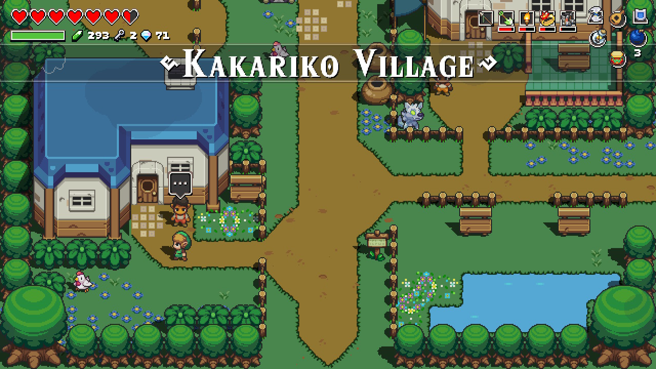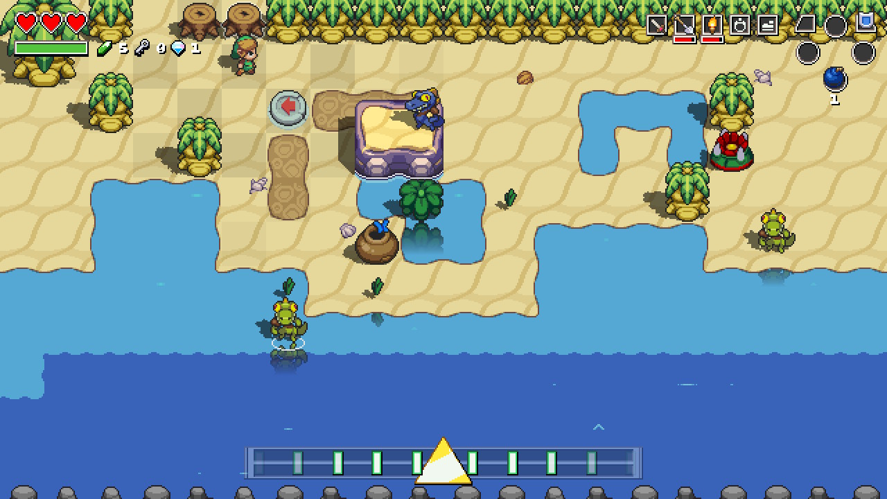 In dem Sinne ist das Spiel also definitiv eine „Light“-Alternative zu „Crypt of the NecroDancer“. Das ist allerdings gar nicht schlimm, denn zur Hälfte handelt es sich ja auch um ein Zelda-Spiel. Statt also ausschließlich durch Verliese zu kriechen, verbringt man einen großen Teil damit, die Oberwelt zu erkunden, die nach dem Prinzip der älteren Zelda-Spiele aufgebaut ist.