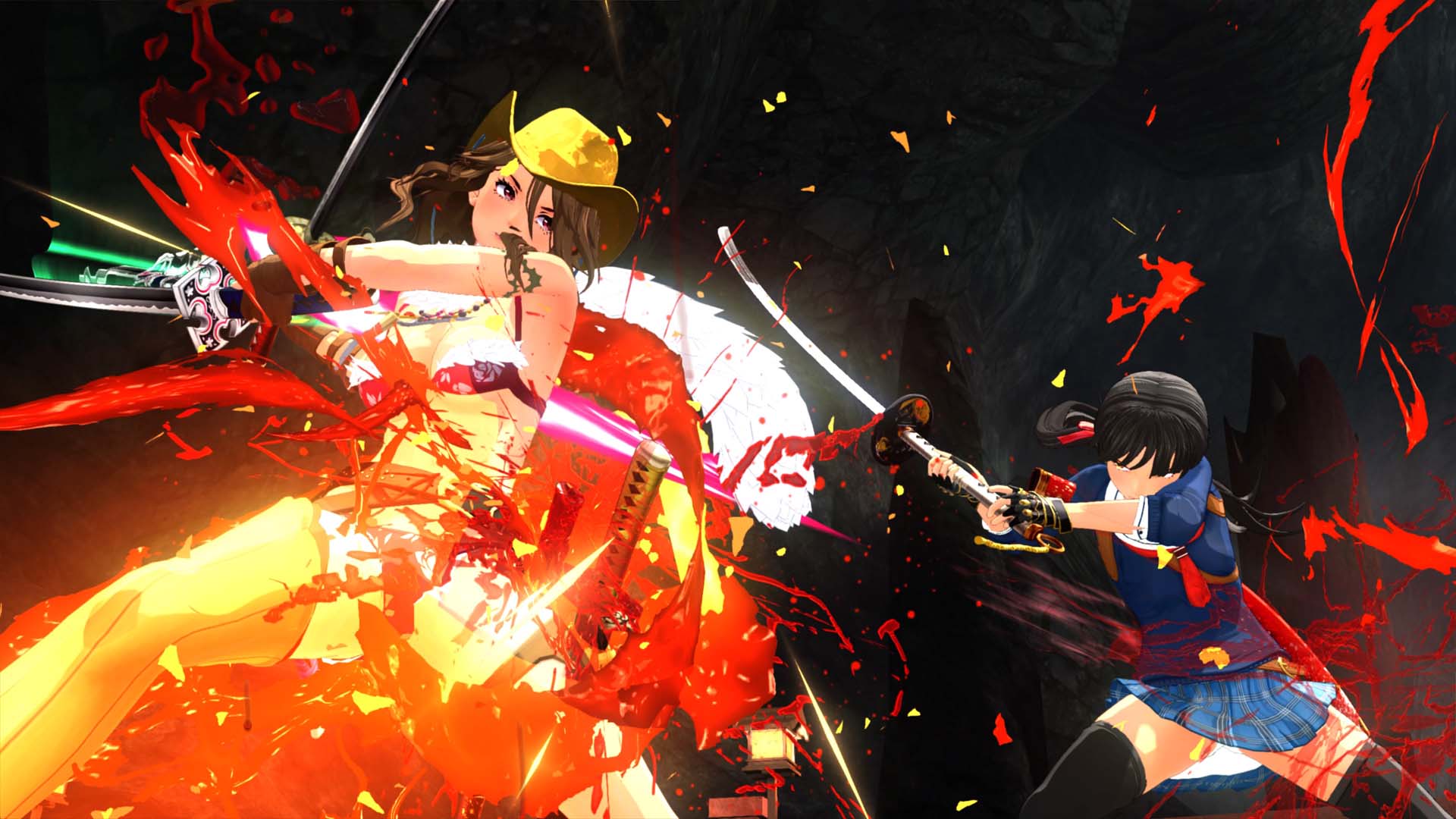 In anderer Funktion bringen übermäßige Blutspritzer auf den Körpern der Kämpferinnen auch einen stärkenden Effekt mit sich. Ist der Körper fast gänzlich rot bedeckt, so verwandelt man sich in eine stärkere Form. Stoppt man ab diesem Punkt die Gier nach Blut nicht, dann kann man sogar komplett in eine Dämonenform übergehen. Als Dämon fällt hier stetig die Energieanzeige, sofern man nicht weiter Gegner besiegt. Köpft und verstümmelt man fröhlich weiter, wird man hingegen mit jedem getöteten Feind geheilt. Die Dämonenform wird dank dieses Features zu einem recht strategischen Mittel in härteren Kämpfen.