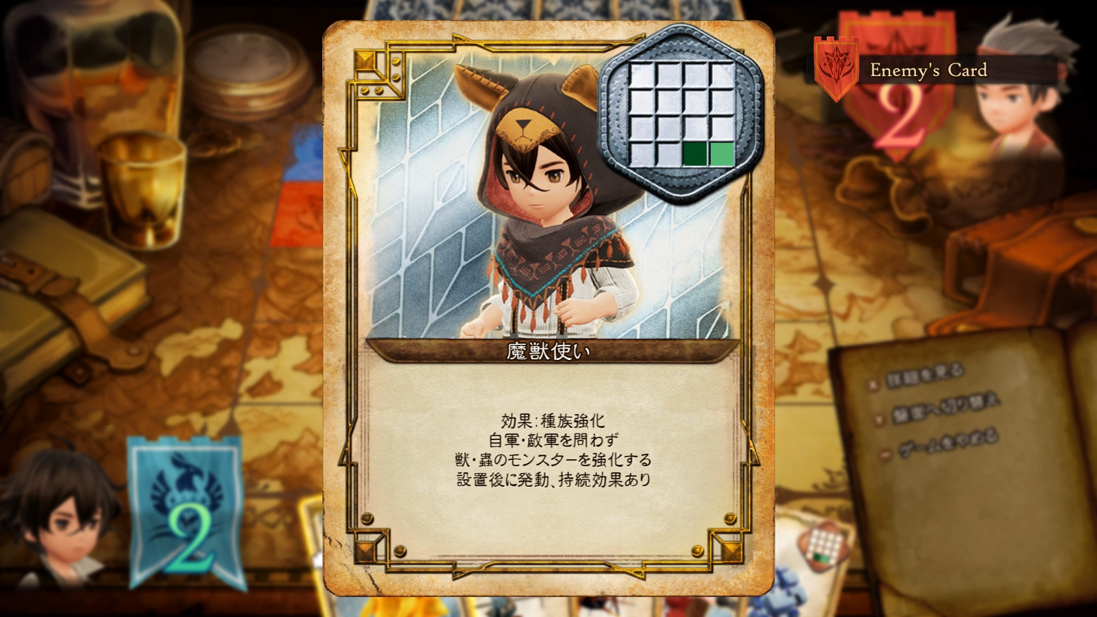 Wer von den bestimmt sehr wichtigen Hauptaufgaben in Bravely Default II einmal eine Pause braucht, kann sich zum Beispiel dem Minispiel Bind & Divide (B ‘n’ D) widmen. Dabei handelt es sich um ein in der Welt beliebtes Kartenspiel. Ihr könnt dieses in der aktuellen Demo übrigens freischalten. Das Ziel des Spiels ist es jeweils, am Ende mehr vom Brett zu beherrschen. Dafür muss man sein Kartendeck gut zusammenstellen. Bestimmte NPCs können jeweils zu einer Partie aufgefordert werden.