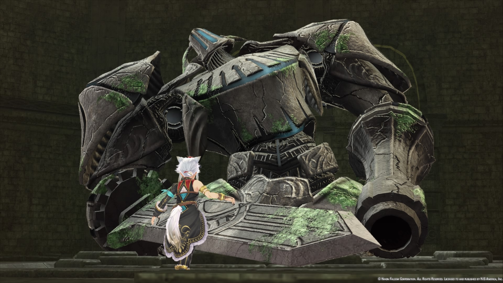 Der erste Besuch von Grimwald Nox war allerdings ein gehöriger Fremdschäm-Moment, da die gesamte Inszenierung so pubertär pseudo-cool war, dass ich die Augen verdrehen musste. Man trifft, so fühlt es sich an, auf eine Gruppe von Cosplayern, die so gar nicht in die Welt von Ys passt – darunter ein kleines Mädchen mit Katzenohren und einem modischen (?) Mini-Hut. Dann schwingt eine in einen dunklen Umhang gehüllte Dame mit mechanischen Gliedmaßen auf der Spitze eines Kirchturms eine dramatische Rede mit möglichst vielen kryptischen Fantasiebegriffen, während im Hintergrund ein blutroter Mond strahlt. Der Inbegriff von „style over substance“.