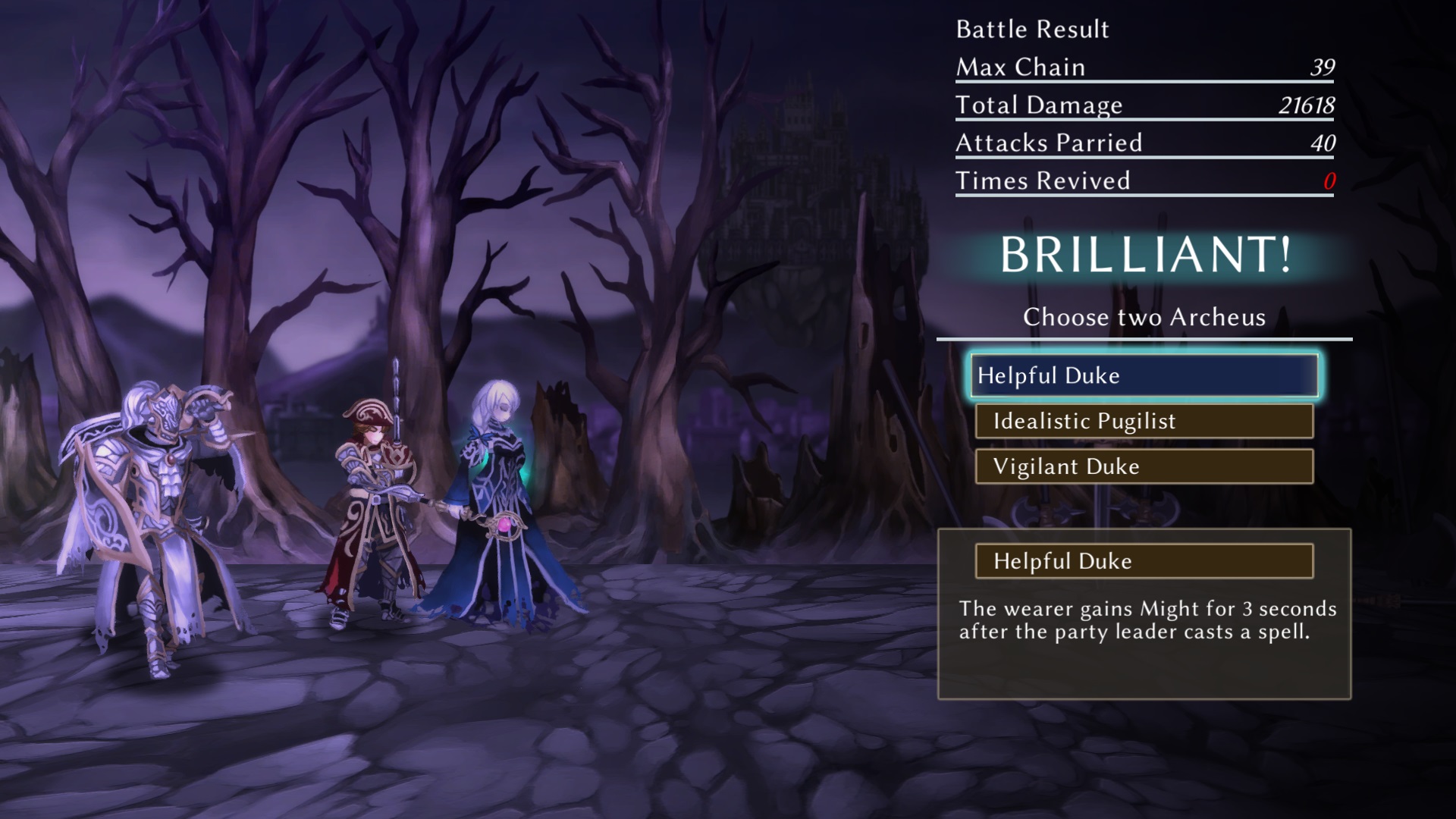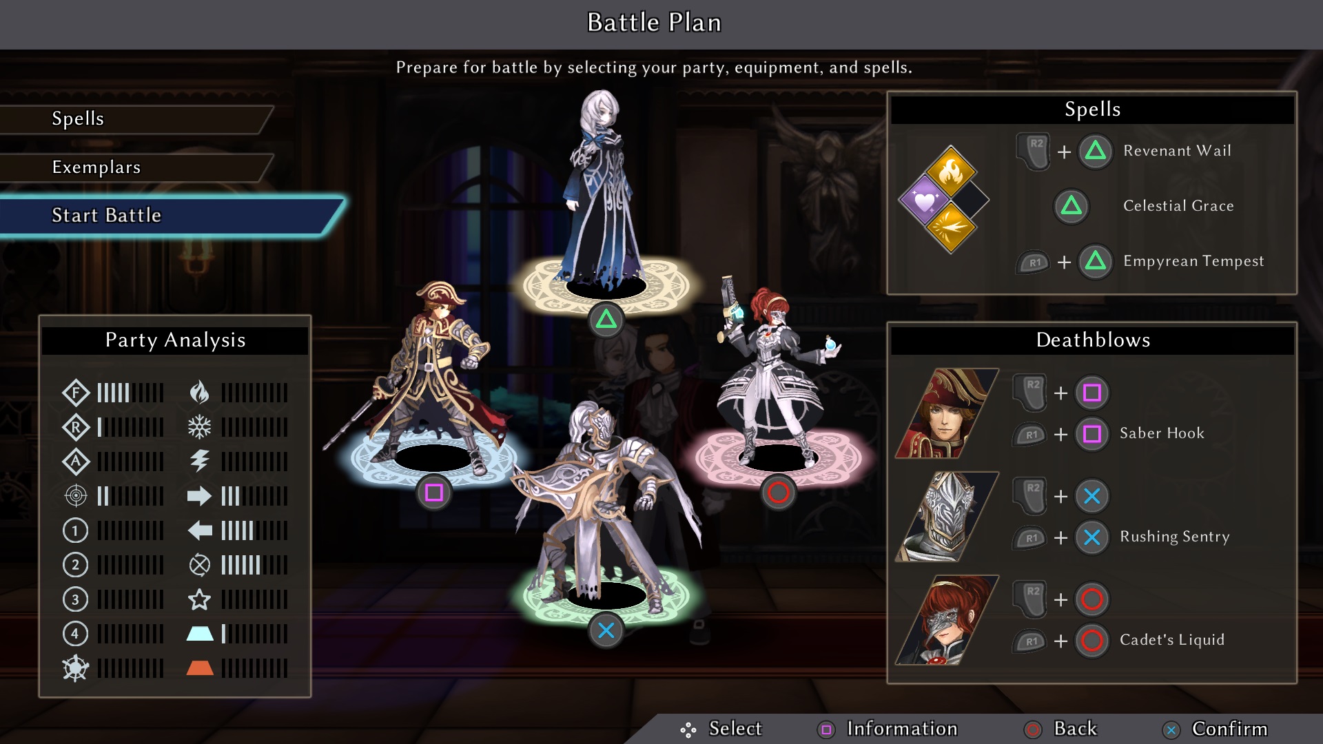 Bevor ihr aber in die Schlacht zieht, stellt ihr eure Truppe zusammen. Rowena kann drei Avatare in ihrer Gruppe mitführen. Jeder von ihnen hat verschiedene Fähigkeiten, welche aber zunächst versiegelt sind. Zusätzlich können eure Einheiten mit passiven Fähigkeiten ausgestattet werden, welche ihr als Belohnung im Feld oder am Ende eines Kampfabschnitts bekommt.