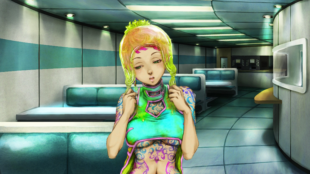 Heutzutage sieht man auch oft diese absolut sauberen Linien und blassen Farben in vielen „modernen“ Spielen mit gezeichneten Charaktermodellen. In Gnosia geht man bewusst den imperfekten Weg, setzt auf Farben, ungewöhnliche Designentscheidungen und grobe Striche. Wirklich künstlerisch und absolut ästhetisch. Besonders in den Eventszenen weiß man designtechnisch noch einmal einen draufzulegen. Liebe EntwicklerInnen, bitte weniger „clean“ und mehr Mut zu solchen Designs, danke.