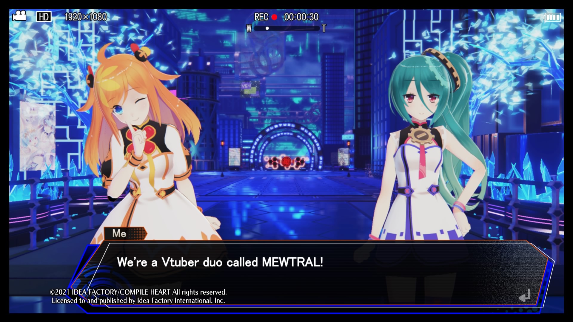 Für das Jubiläum haben sich die Entwickler ein Crossover zwischen den aus dem Franchise bekannten Göttinnen und VTubern erhofft. Was ist daraus geworden? Im Grunde hat man viele, eher für Enthusiasten bekannte VTuber in das Spiel einbauen können. Allerdings sickert diese Implementierung der „echten“ virtuellen Persönlichkeiten nicht sonderlich tief in das Gameplay. Als V-Cubes können gerettete VTuber als Statusbonus ausgerüstet werden, zudem taucht ein kleiner Videoclip bei Aktivierung der VTuber-Hilfsattacke auf. Sonst kann man im Spielverlauf noch Sammelkarten der virtuellen Persönlichkeiten finden und während Ladebildschirmen kurze Clips mit Vorstellungen von den VTubern ansehen.