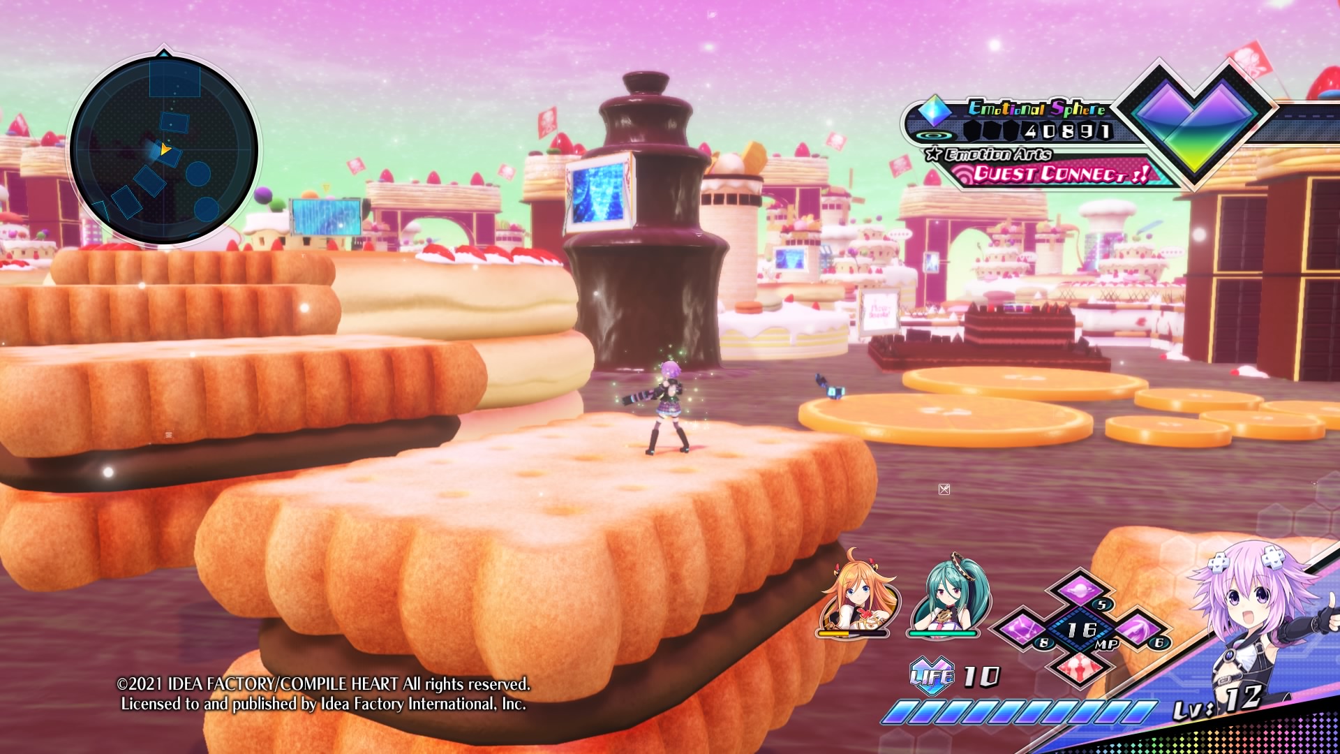 Grafisch ist Neptunia Virtual Stars kein Meisterwerk, das habe ich aber auch nicht erwartet. Die Charaktermodelle sind hübsch entworfen, die Areale unterscheiden sich auch stark voneinander. Zu Beginn startet man in einer futuristischen Stadt, mal landet man in einem Land voller Süßigkeiten und Schlemmereien und mal macht man einen Abstecher in ein Areal, welches offensichtlich auf Twitter basiert. Hier und da werden Ereignisse in der Erzählung auch mit einer Illustration untermalt. Performance-Probleme gab es sowohl auf einer PlayStation 4 als auch einer PlayStation 4 Pro nicht, allerdings haben auf beiden Konsolen die Charaktermodelle und auch die Umgebung einen leichten unscharfen Effekt.