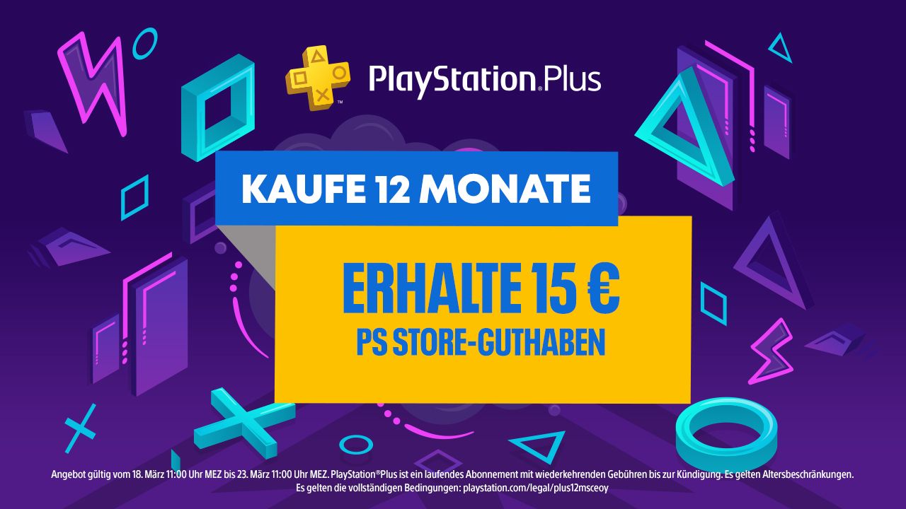 Und jetzt habt ihr auch noch die Möglichkeit, bis zu 30 Euro Guthaben für Einkäufe im PlayStation Store abzusahnen. Diesmal müsst ihr allerdings auch etwas leisten. Oder besser: bezahlen. Wenn ihr euch ein PlayStation-Plus-Abo über 12 Monate kauft, dann bekommt ihr 15 Euro Guthaben dazu.