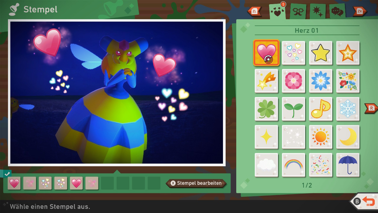 Alle erbrachten Leistungen belohnt New Pokémon Snap zusätzlich mit Titeln, die vergleichbar sind mit Achievements oder Trophäen. Es ist teilweise echt knifflig, alle Fotos zu einem Pokémon abzulichten. Für extra schwere Motive stellt mir das Spiel Aufgaben, die Hinweise enthalten und zusätzliche Inhalte für den Fotobearbeitungsmodus freischalten.