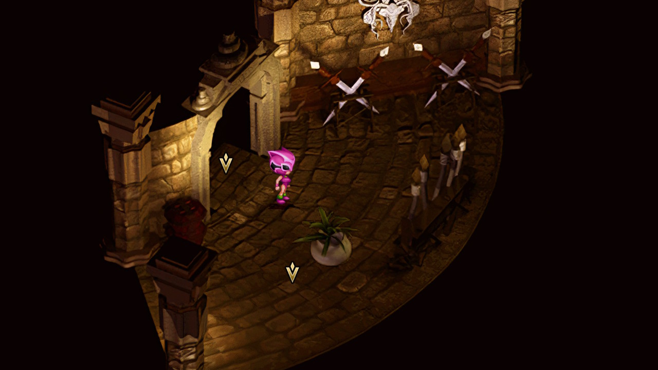 Hier und da hat man zwar einige Gegnermodelle, die etwas verschwommen daherkommen, aber alles in allem ist das mehr als ausreichend umgesetzt. Die vorgerenderten Hintergründen können zwecks besserer Übersicht auch mit Pfeilen für Ein- und Ausgänge ausgestattet werden, da es schon einmal vorkommen kann, dass man nicht wirklich klar erkennt, wo man denn nun hingehen darf und wo nicht.