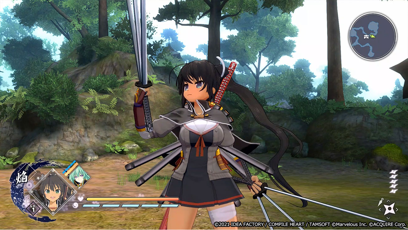 Gespräche zwischen den Charakteren finden dabei wie in einer Visual Novel statt, im Kampf gibt es dann Action. Dort sammelt man Erfahrungspunkte, steigt im Level auf und passt die Fähigkeiten den eigenen Vorlieben an. Als Mini-Game lockt das Bad in einer heißen Quelle.
