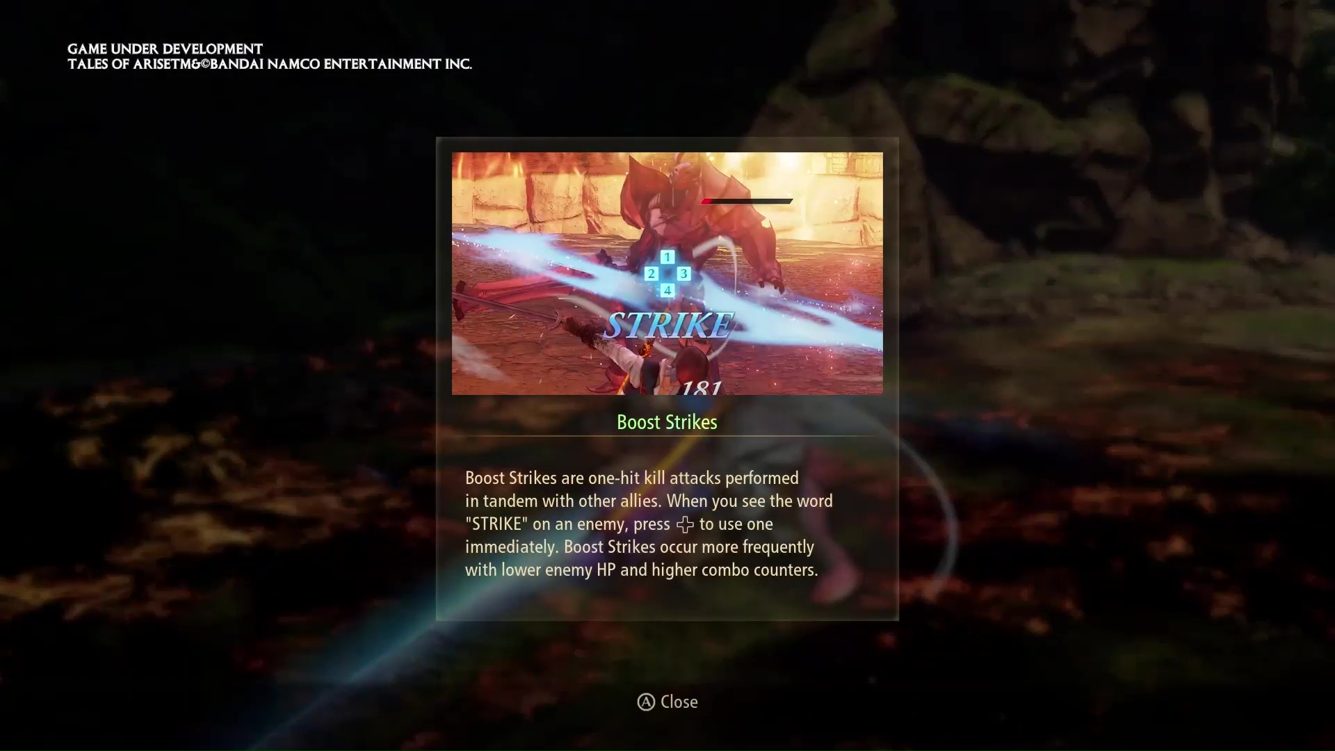 Der Boost-Schlag ist nochmal ein spezieller Kombinationsangriff von zwei Teammitgliedern, welche dem Gegner den Rest geben sollen. Dementsprechend wird eine Ausführmöglichkeit mit „SCHLAG“ initiiert. In der Demo waren drei Kombo-Angriffe möglich, jeweils mit zwei der sechs Charakteren. Später sollen aber noch mehr Kombinationen folgen. Wenn der Gegner nur noch wenige KP übrig hat oder die Kombo-Anzahl hoch ist, steigt die Wahrscheinlichkeit, dass sich ein Boost-Schlag ausführen lässt.