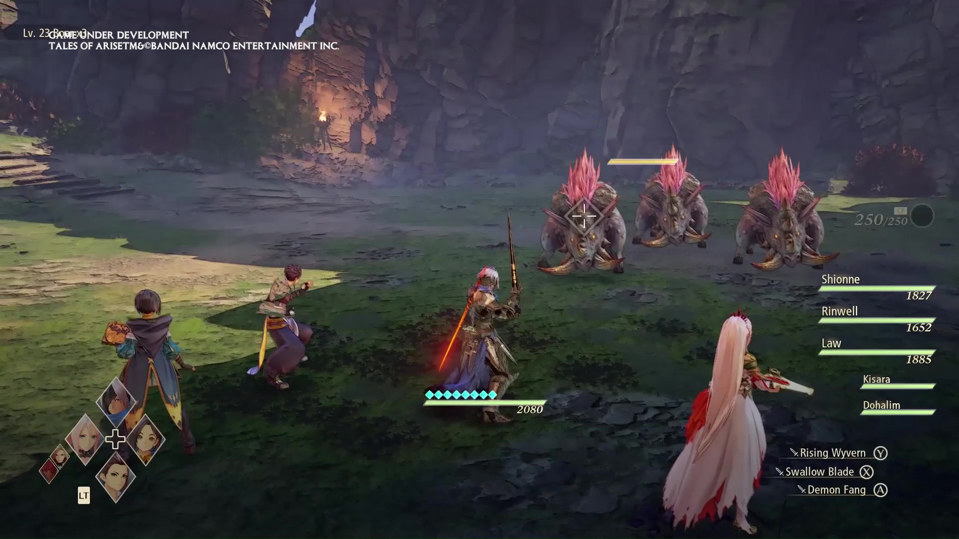 Dazu gesellt sich noch die Magierin Rinwell, ein Faustkämpfer namens Law, Dohalim, der einen Stab als Waffe nutzt, sowie eine Soldatin namens Kisara. Letztere nutzt einen Schild und einen Hammer als Ausrüstung, wobei der Schild als ausgerüstete Waffe zählt. Alle Charakter waren in der Demo bereits als Anführer auf der Weltkarte oder im Kampf spielbar.