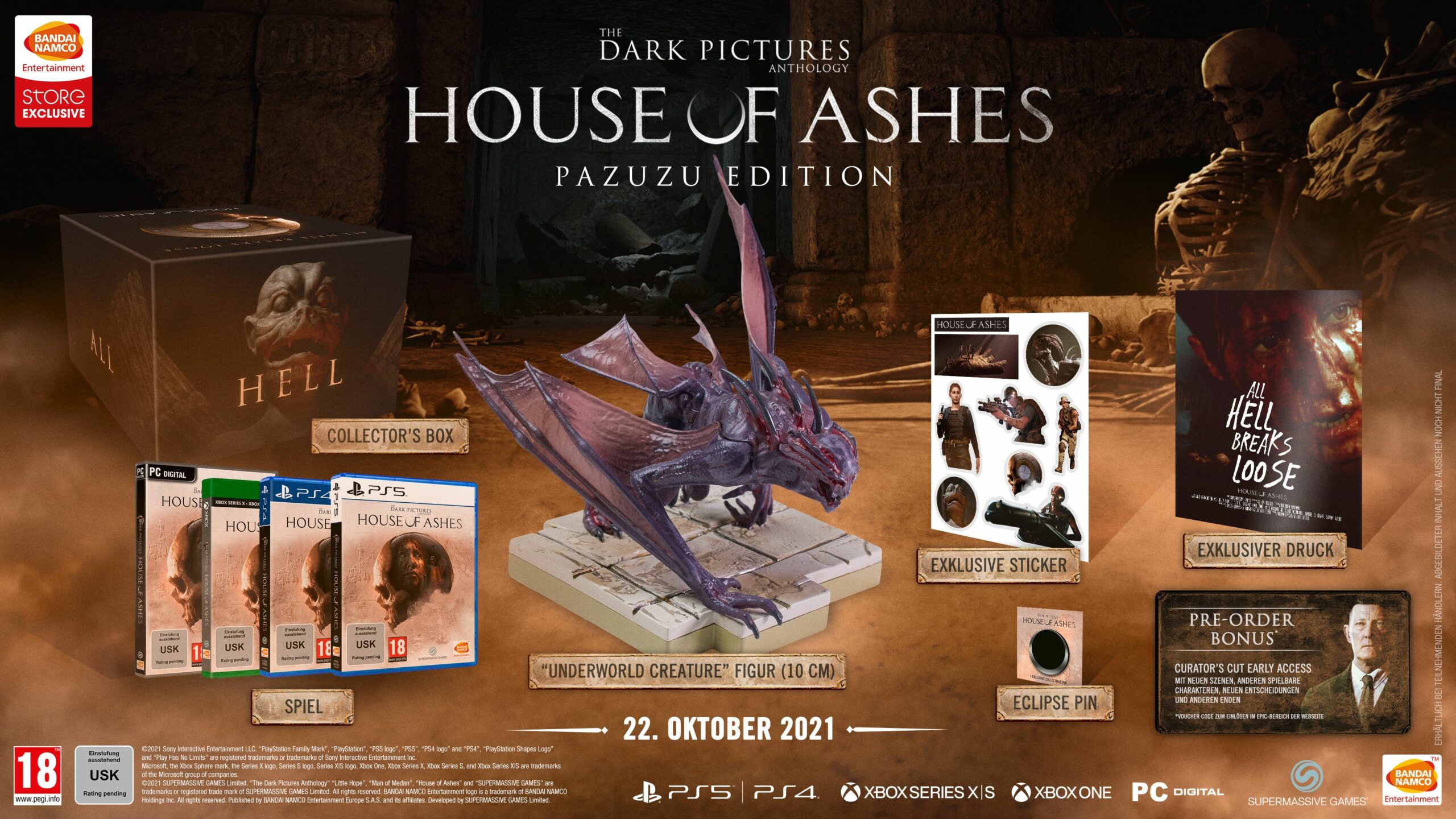House of Ashes erscheint auch in einem Bundle mit Man of Medan und Little Hope. Physisch wird es außerdem eine Standardversion und die Pazuzu Edition geben, die KäuferInnen nur im Store von Bandai Namco finden.