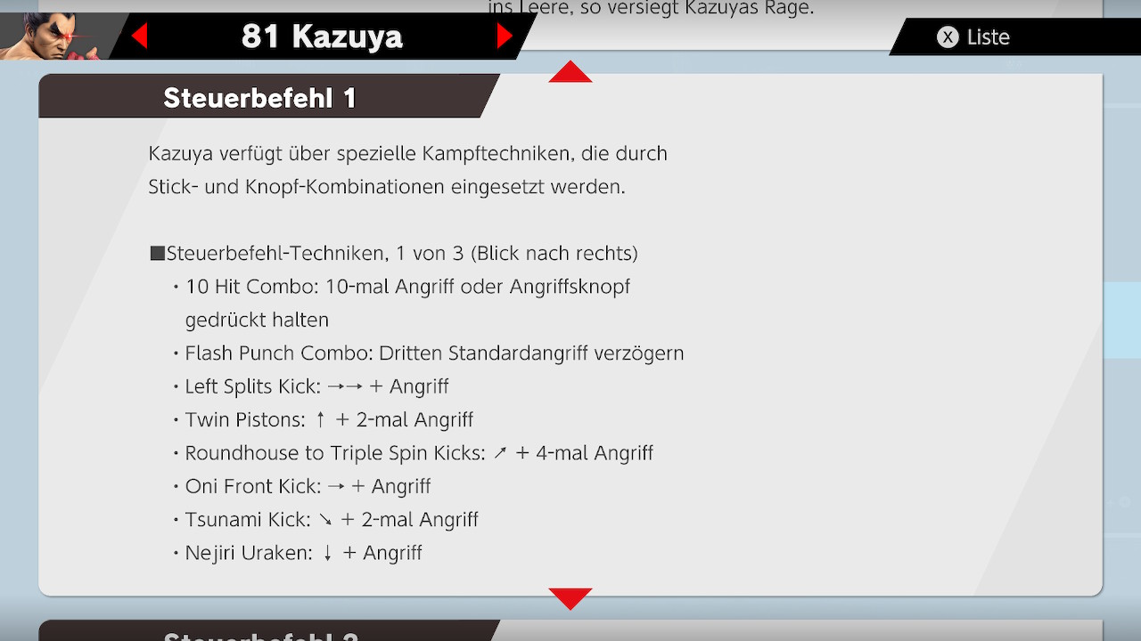 Kazuya legt eine Schippe obendrauf und erweitert sein Angriffsrepertoire um sagenhafte 20 Angriffe, die durch eine bestimmte Tastenkombination oder einen Steuerbefehl ausgeführt werden.