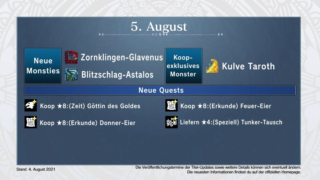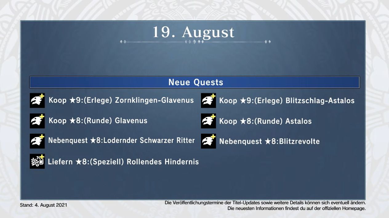 Am 5. August geht es los, die Events gehen am 19. August weiter. Dazu zeigt Capcom im Trailer auch zwei Schaubilder, die wir hier noch einmal für euch haben:
