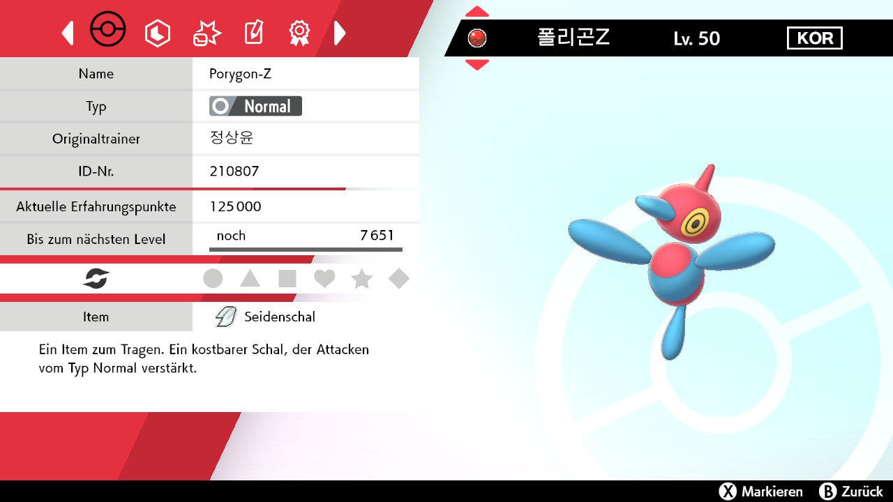 Das Pokémon basiert nämlich auf dem Porygon-Z, das Jeong Sang-yoon im letzten Jahr genutzt hat. Er ist der Gewinner des koreanischen Pokémon-Cups 2020. Dieses Gewinner-Porygon-Z trägt einen Seidenschal und beherrscht die Attacken Hyperstrahl, Donnerblitz, Finsteraura sowie Ränkeschmied. Es ist scheu und vom Level 50!