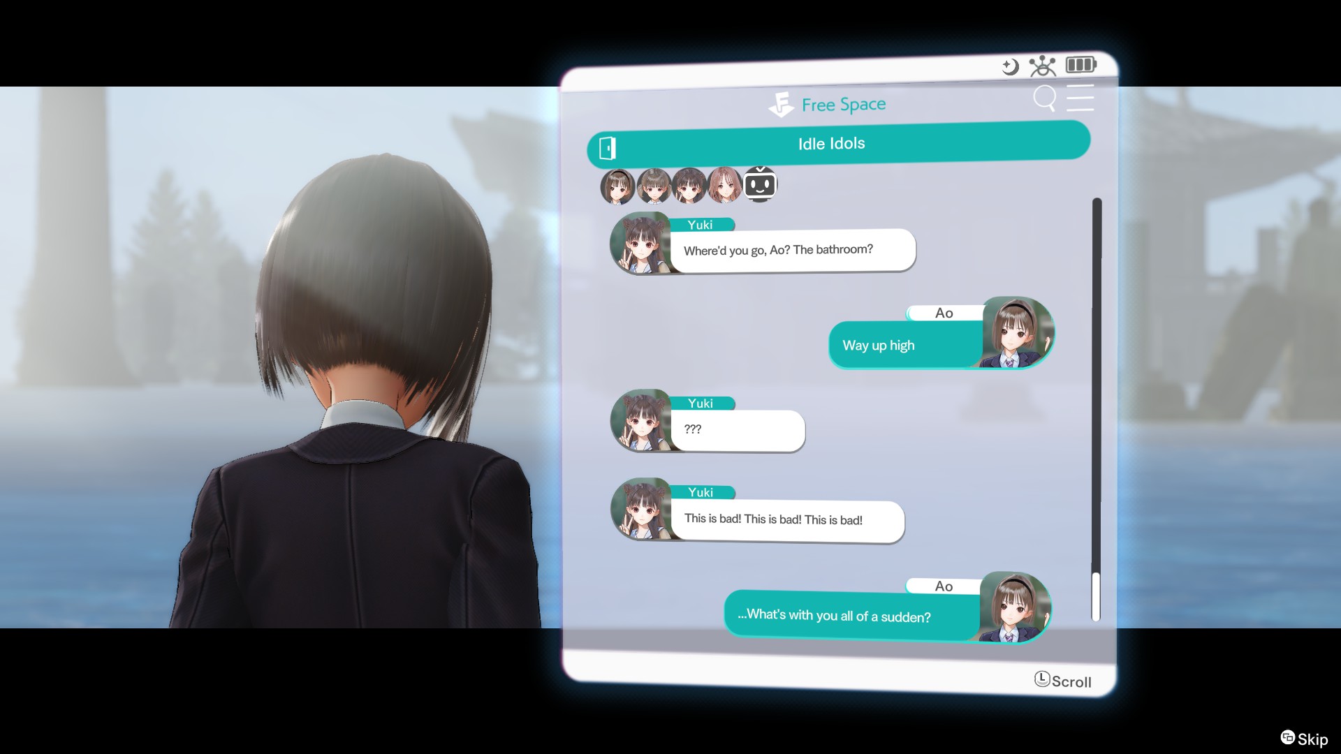 In dieser Fassung konnten wir mit unseren Freunden sprechen, per Handy chatten und vereinzelt kleinere Aufträge für diese erfüllen. Innerhalb des Gebäudes war es uns möglich, einige Gegenstände zu sammeln und diese zu verarbeiten. Von Zeit zu Zeit ist es auch möglich, eure Freunde zu daten, um eure Bindung mit diesen zu festigen. Letzteres spielte sich in der Vorabversion im Erkunden des Schulgebäudes und dem Abspielen verschiedener Szenen ab.