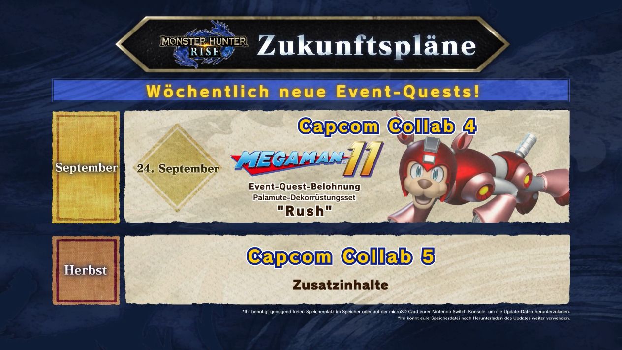 Capcom hat die inzwischen vierte Kollaboration zu Monster Hunter Rise vorgestellt. Rush aus Mega Man 11 wird seinen Platz in Kamura finden. Ab dem 24. September beginnt die neue Event-Quest, im Rahmen derer ihr eine Palamute-Dekorrüstung „Rush“ erhalten könnt.