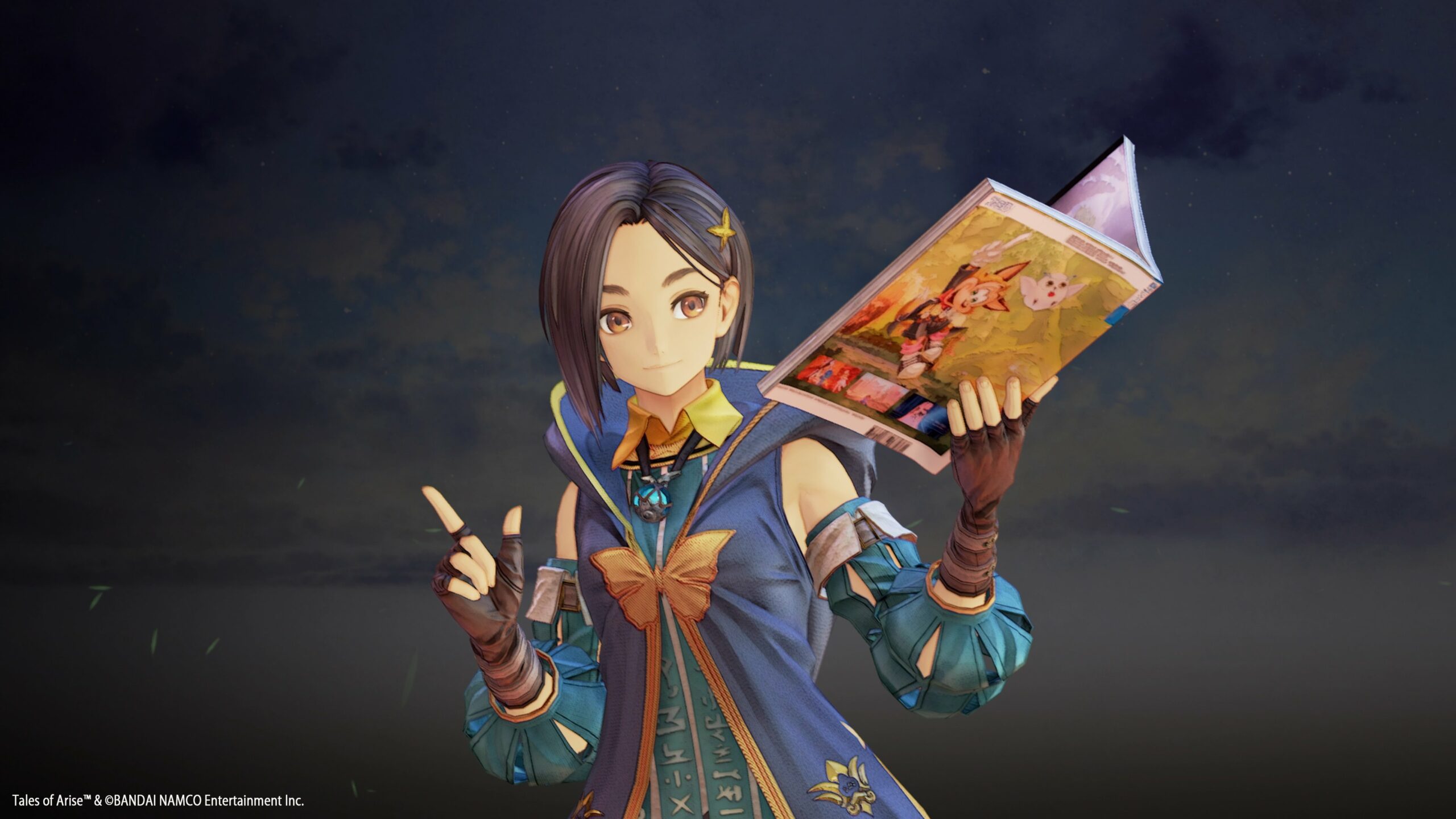 Auch normalerweise nutzt sie ein Buch als Waffe. Für sie wird es also keine große Umstellung. Dass der Waffen-Skin auch seinen Weg in den Westen findet, ist eher unwahrscheinlich. Aber man weiß nie! Bei Twitter zeigte der japanische Account zu Tales of Arise einige Screenshots der Famitsu „in Aktion“, die ihr nachfolgend seht.