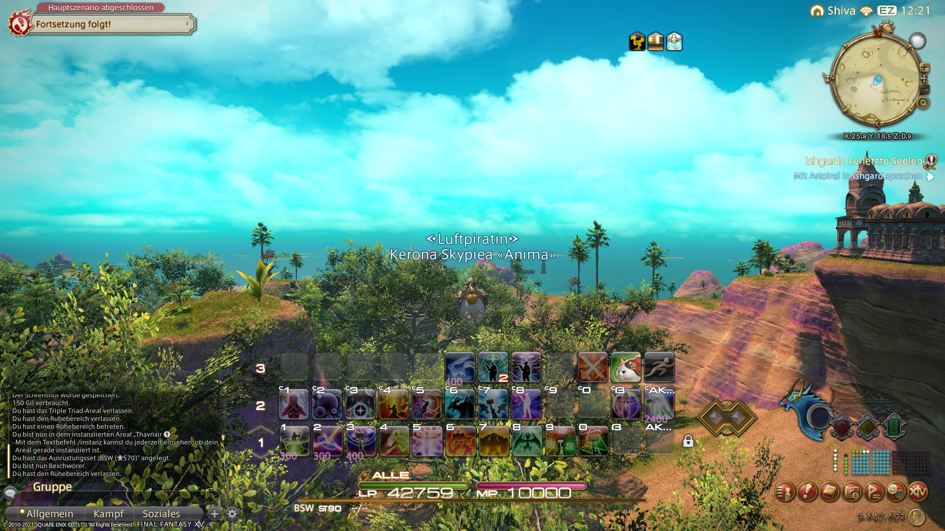 Außerdem ist das neue Quest-Feature etwas langweiliger als bei den bisherigen Erweiterungen. In Stormblood war es beispielsweise das Ausschau halten nach bestimmten Personen oder Events in der Umgebung, bei dem ihr durch eine Art Teleskop geblickt habt. Dieses Mal ist das „Besondere“, dass ihr von einem NPC begleitet werdet und diesen nicht verlieren dürft – sei es durch das Benutzen eines Reittiers oder eines Teleportationskristalls. Und diese Quests kommen wirklich seeehr häufig vor, was auf Dauer wirklich nervig ist, da wir uns maximal mit Sprinten fortbewegen dürfen.