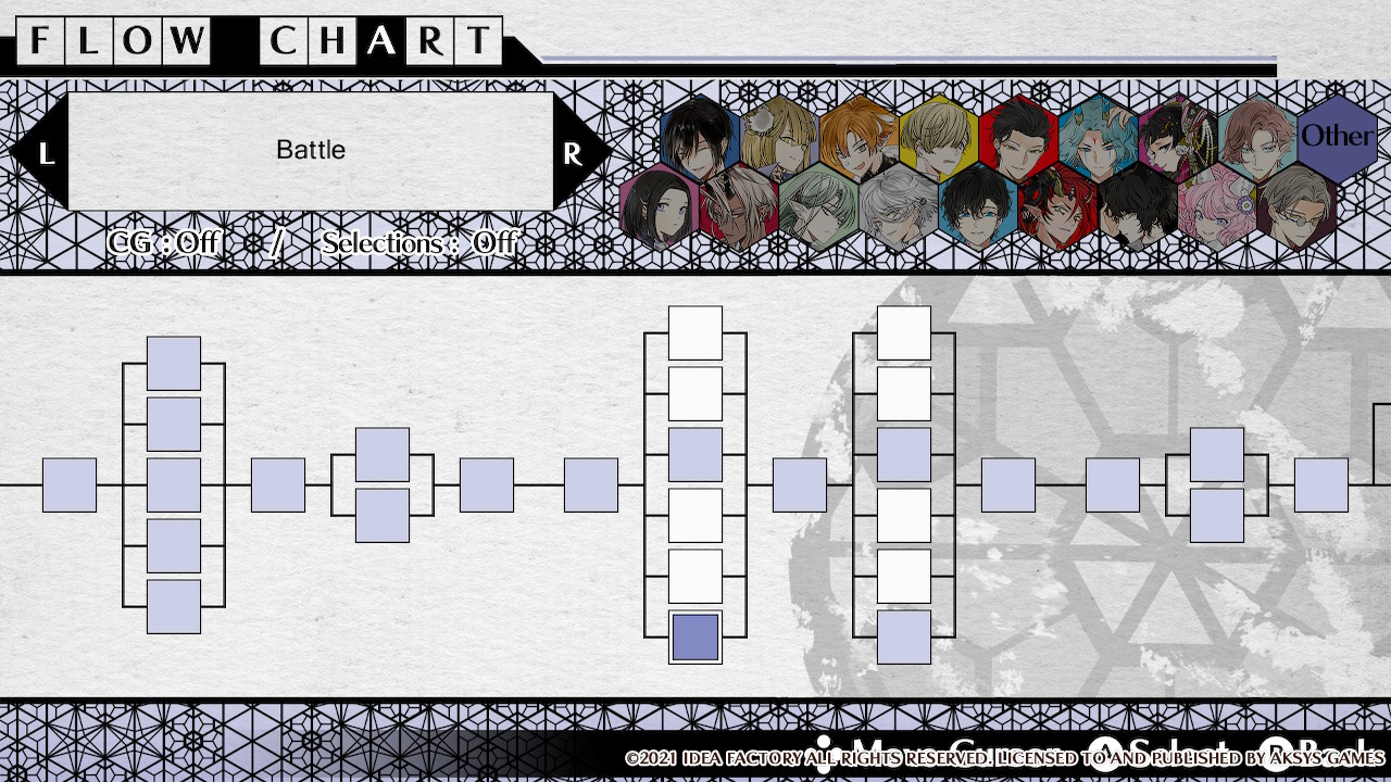 Auch diese lässt sich hier optional einschalten. Zusätzlich dazu könnt ihr euch den Status eurer Beziehung zu den verschiedenen Charakteren anschauen sowie in einem Flowchart verschiedene Handlungsstränge betrachten. Im sogenannten „Completion Check“ könnt ihr euch außerdem anzeigen lassen, zu wie viel Prozent ihr die Kapitel oder Charakterrouten absolviert habt – für die Kompletist:innen unter euch eine interessante Option. Eine vollständige Komplettierung ist zudem notwendig, um alle Bilder freizuschalten.
