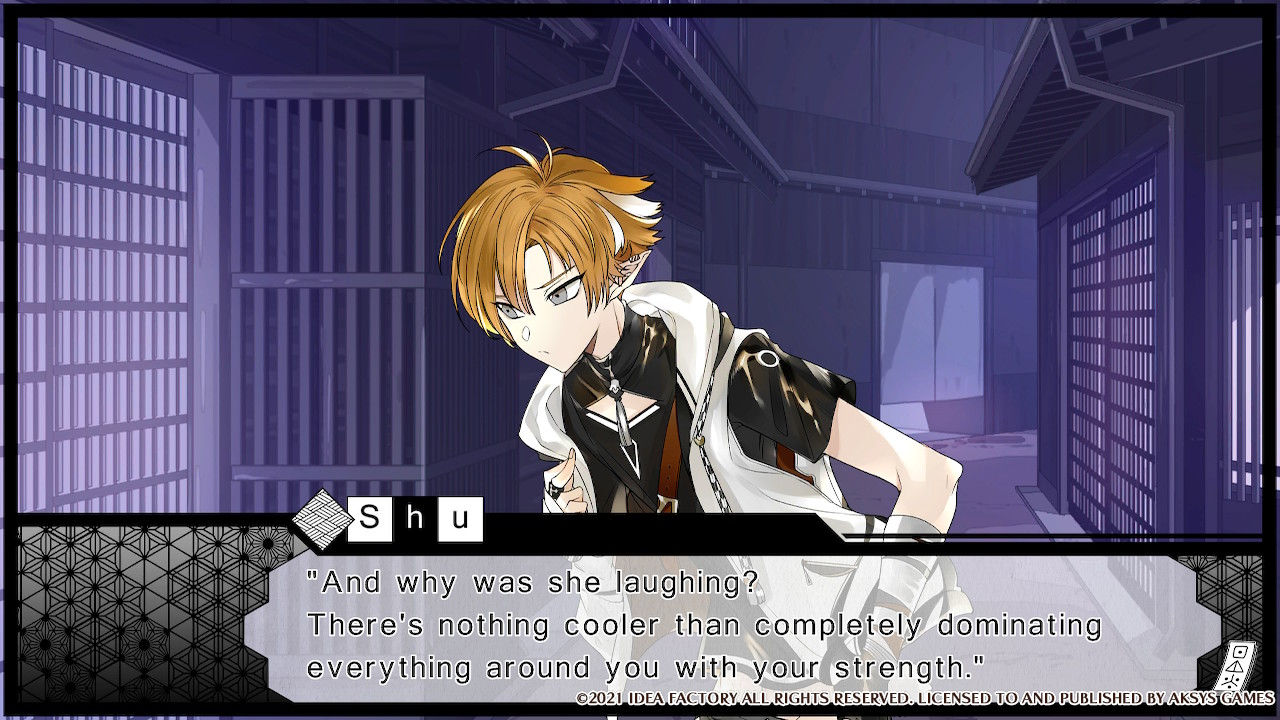 Der Schlangen-Yokai Shu hingegen ist ein kompletter Tsundere – ein Charakterstereotyp, den man lieben oder hassen kann. Bei ihm fand ich die Handlung tatsächlich am langweiligsten gegen Ende, obwohl Potenzial da gewesen wäre. Diese macht auch erst hundertprozentig Sinn, wenn ihr die finale Route gelesen habt, in der die Haupthandlung der ersten drei Kapitel weitergeführt und abgeschlossen wird.