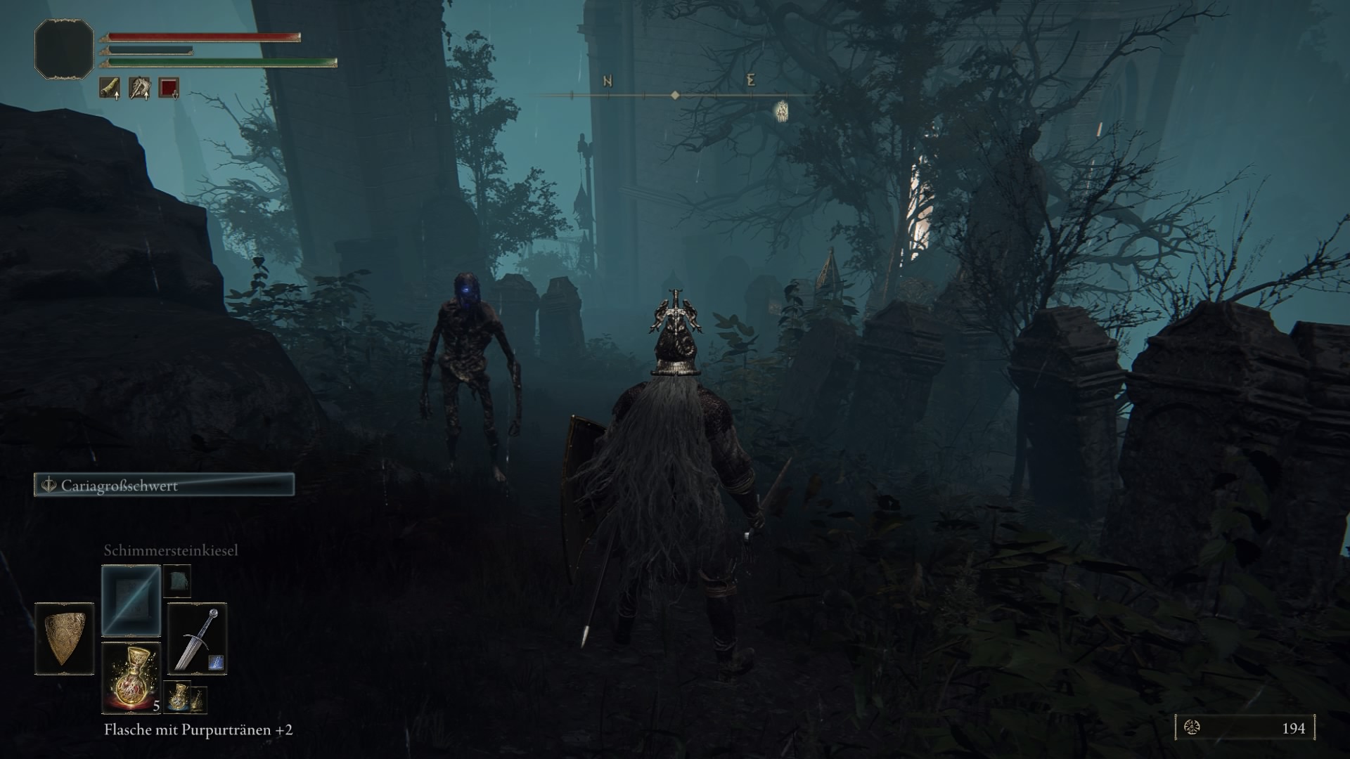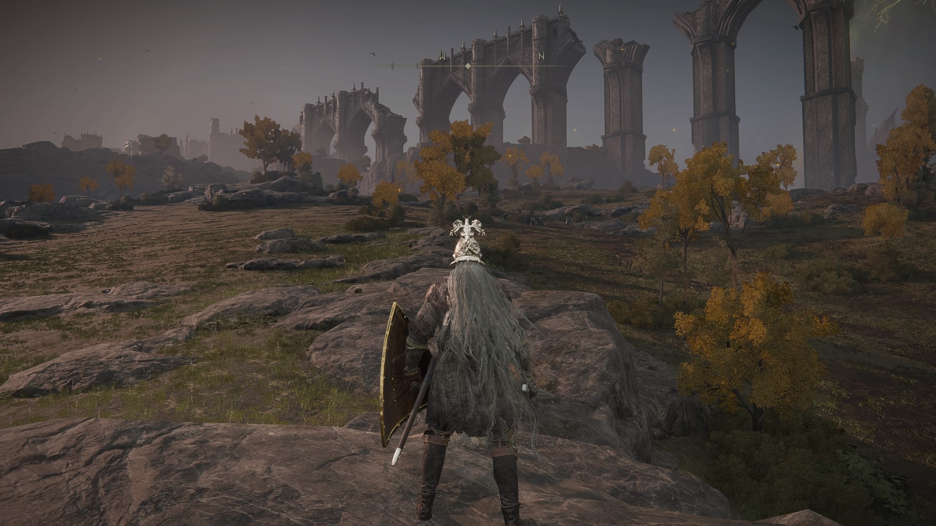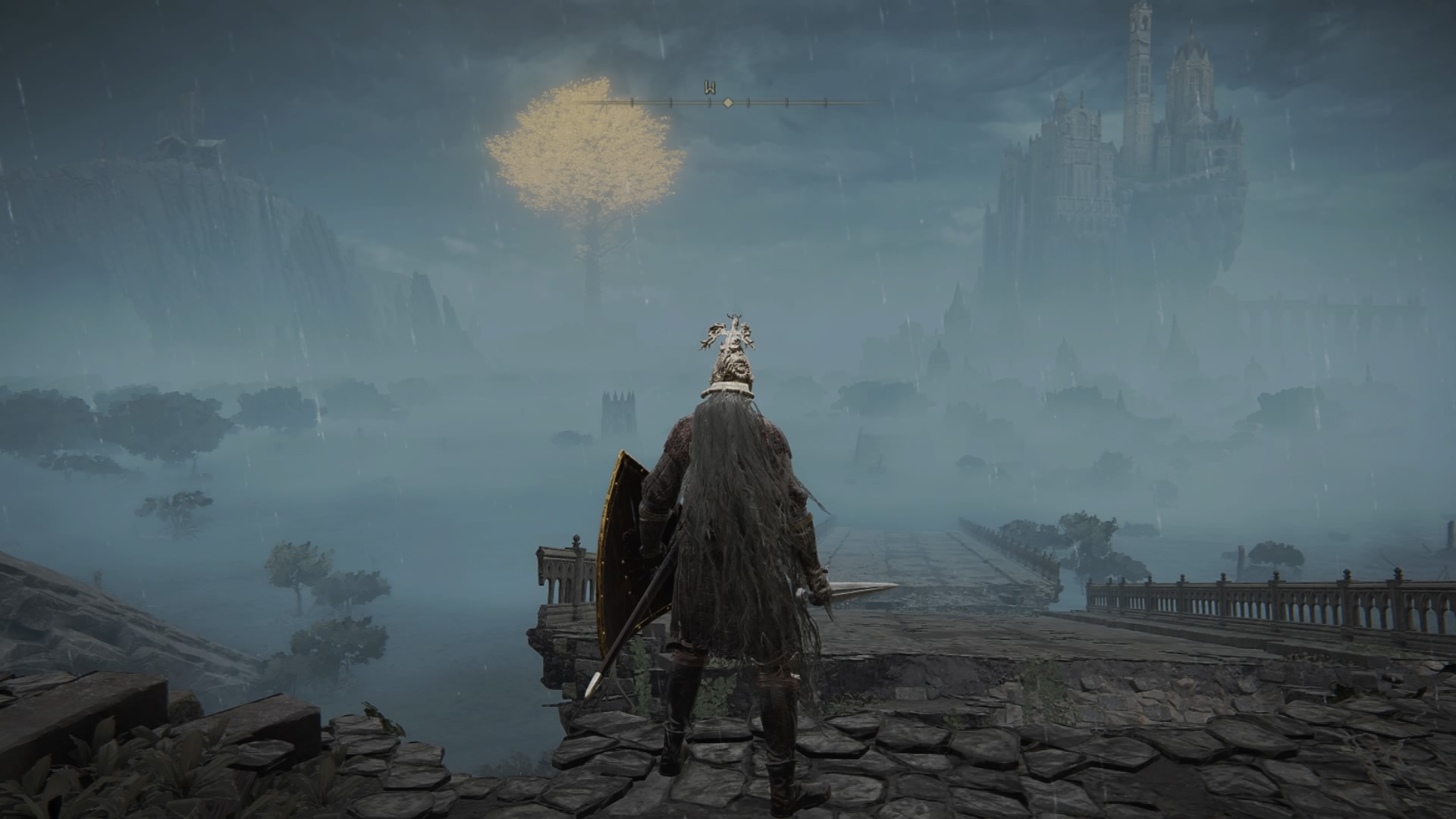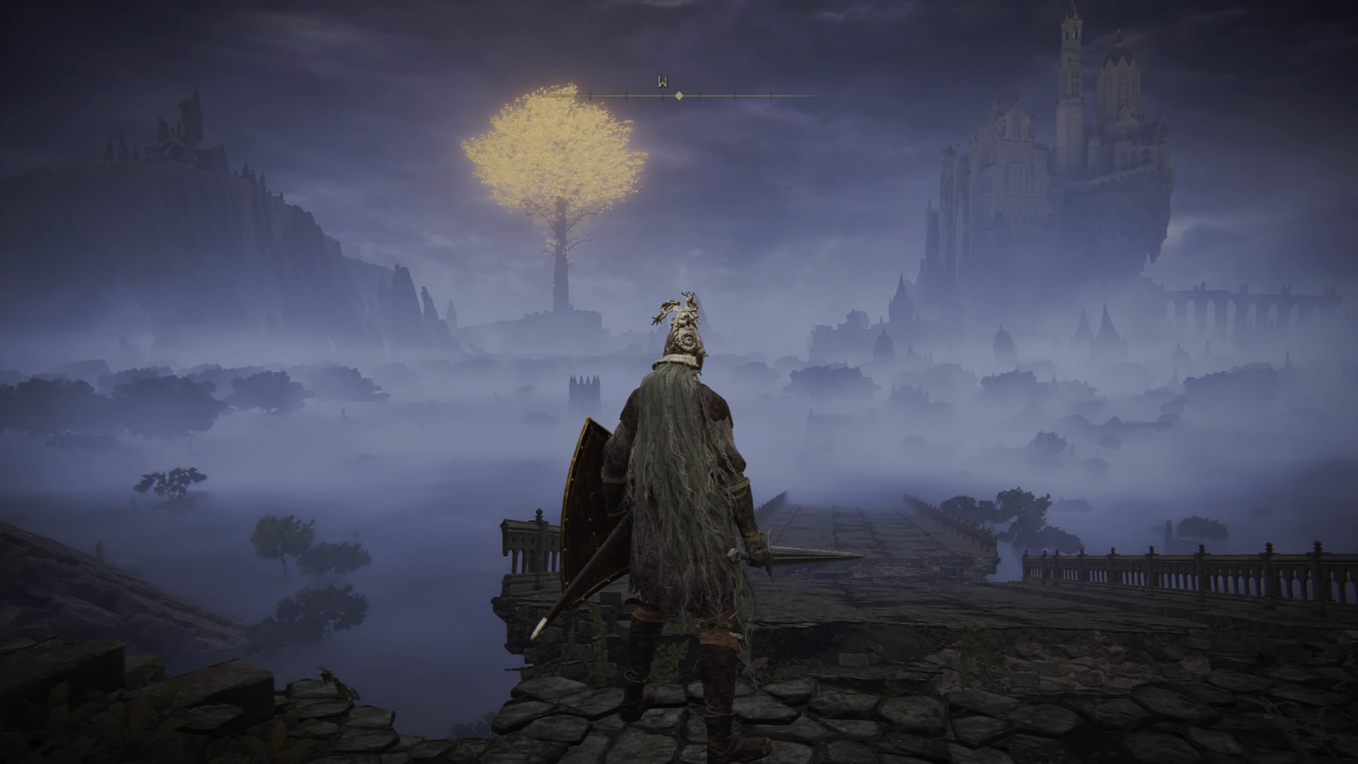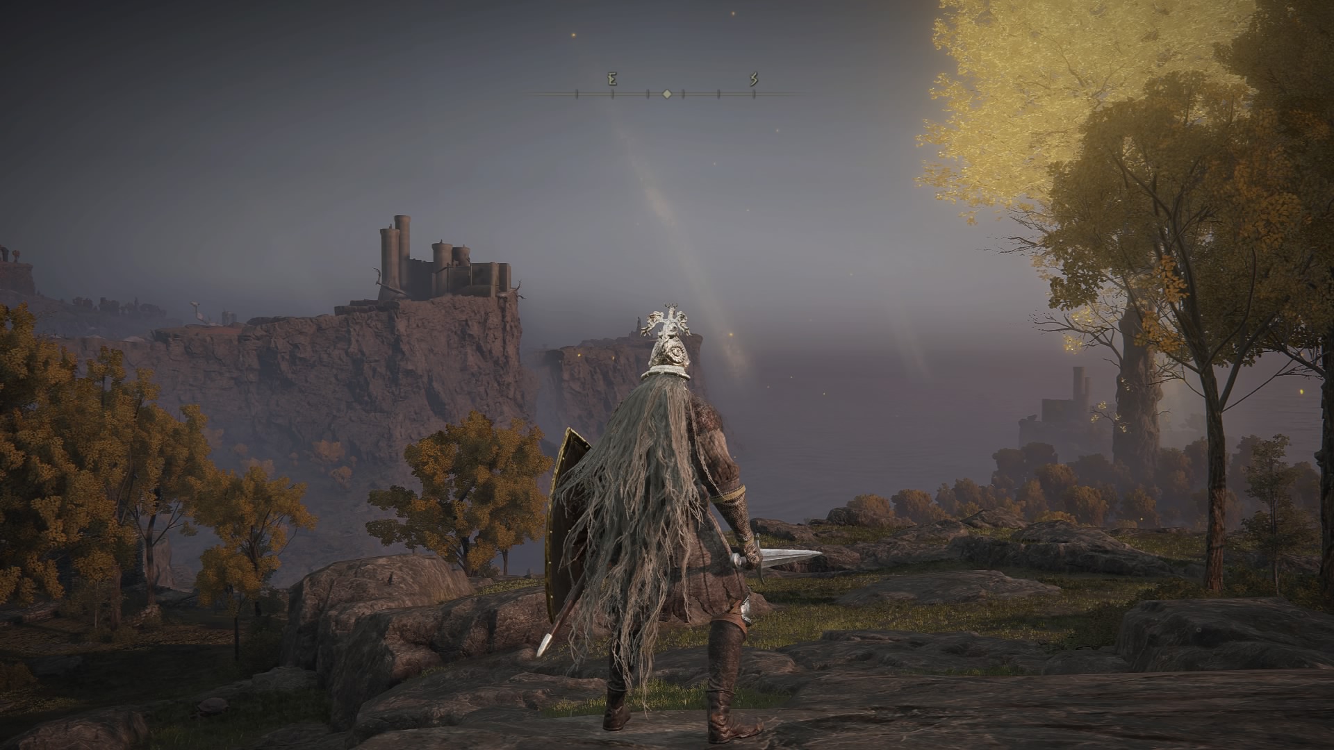 Zunächst absolvieren wir das Tutorial, wobei alle Tipps jederzeit im Menü nachgelesen werden können. Danach heißt uns das Zwischenland willkommen. Die große, offene Welt. Diese lässt sich, wenn man es denn darauf anlegt, gleich zu Beginn fast vollständig erkunden, wobei einige Orte noch nicht zugänglich sind. Als besonders nützlich stellt sich bei der Erkundung das Spektralross heraus, womit man bequem von A nach B kommt. Als Rastplätze stehen die Orte der Gnade zur Verfügung, welche den klassischen Leuchtfeuern entsprechen. Das sind auch die Ziele für die Schnellreisefunktion, welche außerhalb von Dungeons und Kämpfen zur Verfügung steht.